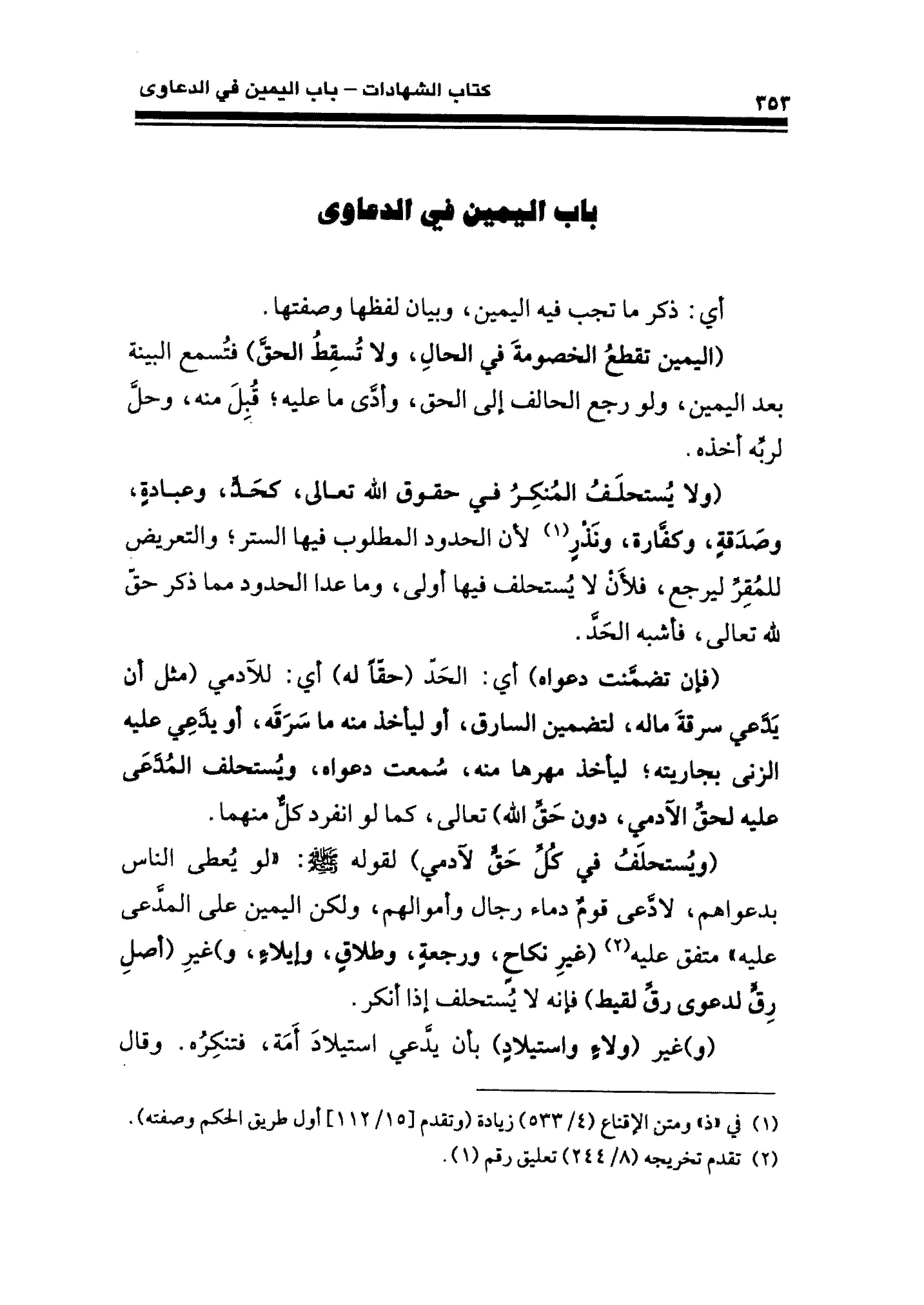 (¬١) في "ذ" ومتن الإقناع (٤/ ٥٣٣) زيادة (وتقدم [د ١/ ١١٢] أول طريق الحكم وصفته).
