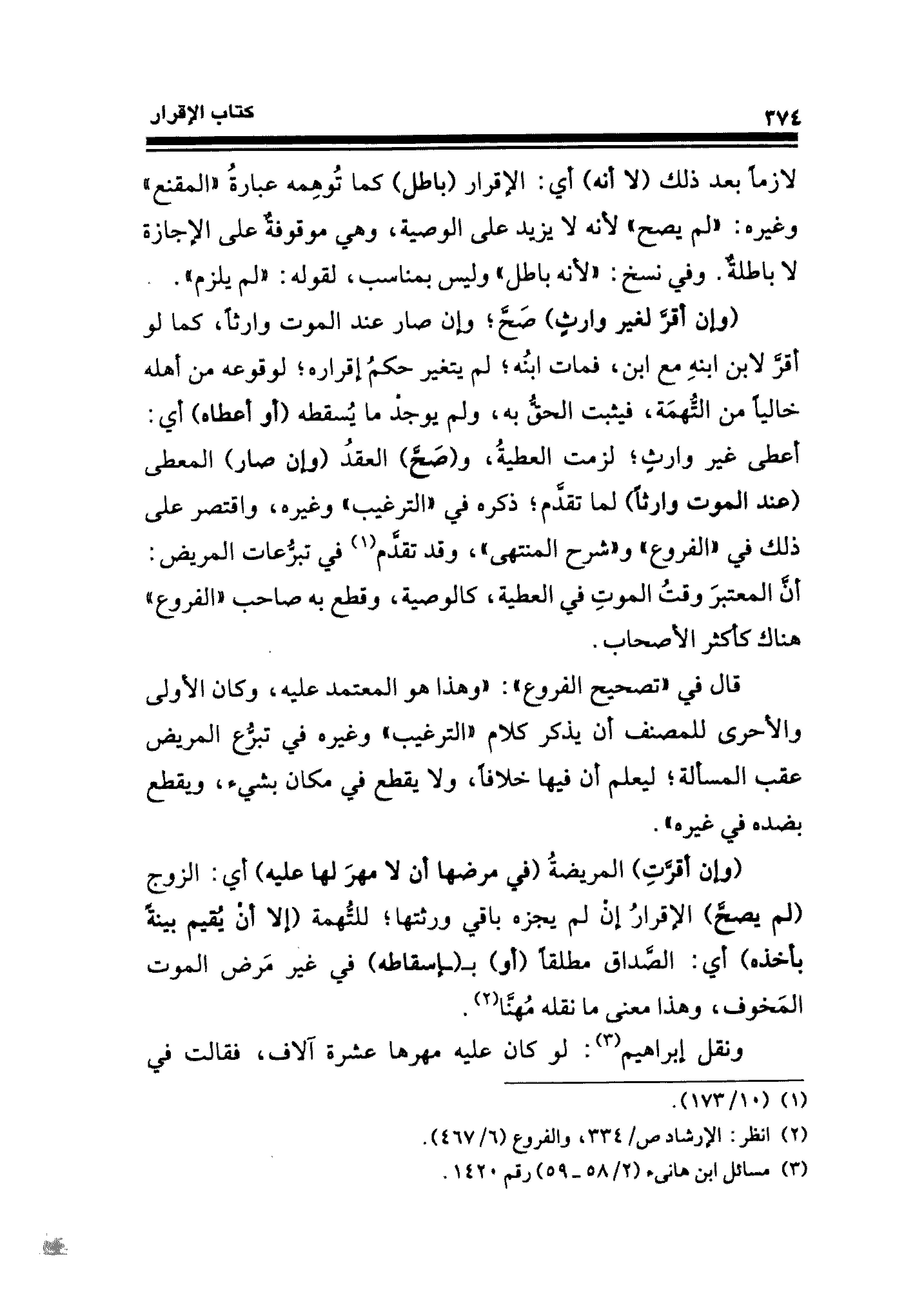 (¬٢) انظر: الإرشاد ص/ ٣٣٤، والفروع (٦/ ٤٦٧).