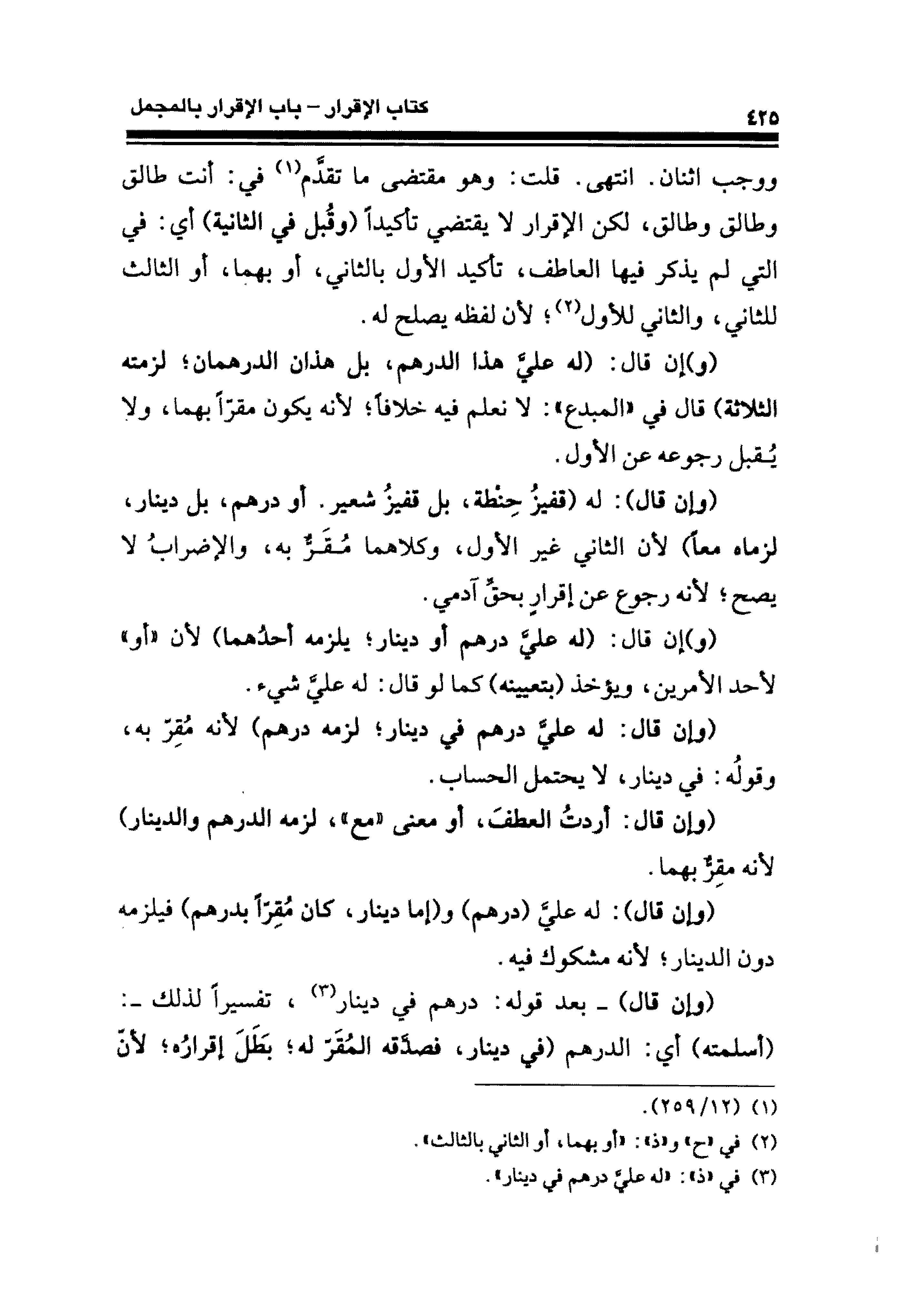 (¬٣) في "ذ". "له عليَّ درهم في دينار".