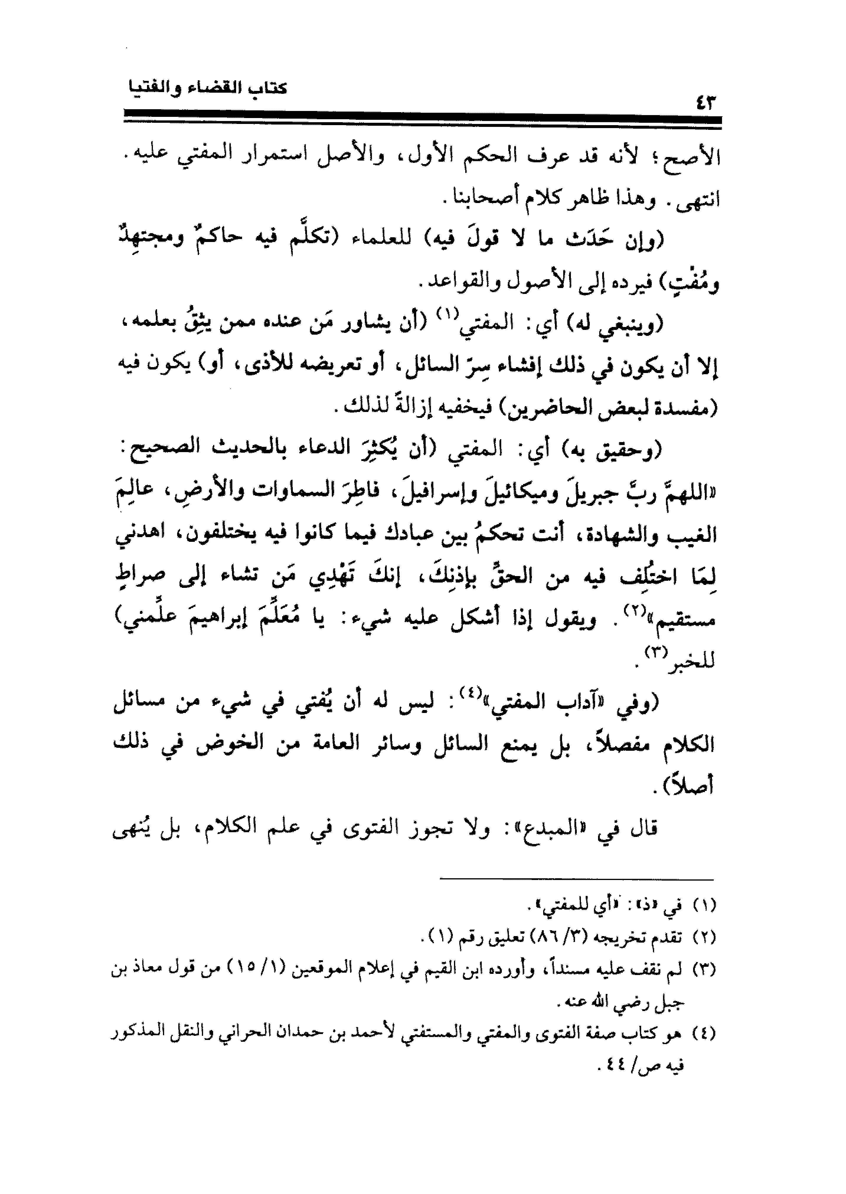 (¬٤) هو كتاب صفة الفتوى والمفتي والمستفتي لأحمد بن حمدان الحراني والنقل المذكور فيه ص /٤٤.