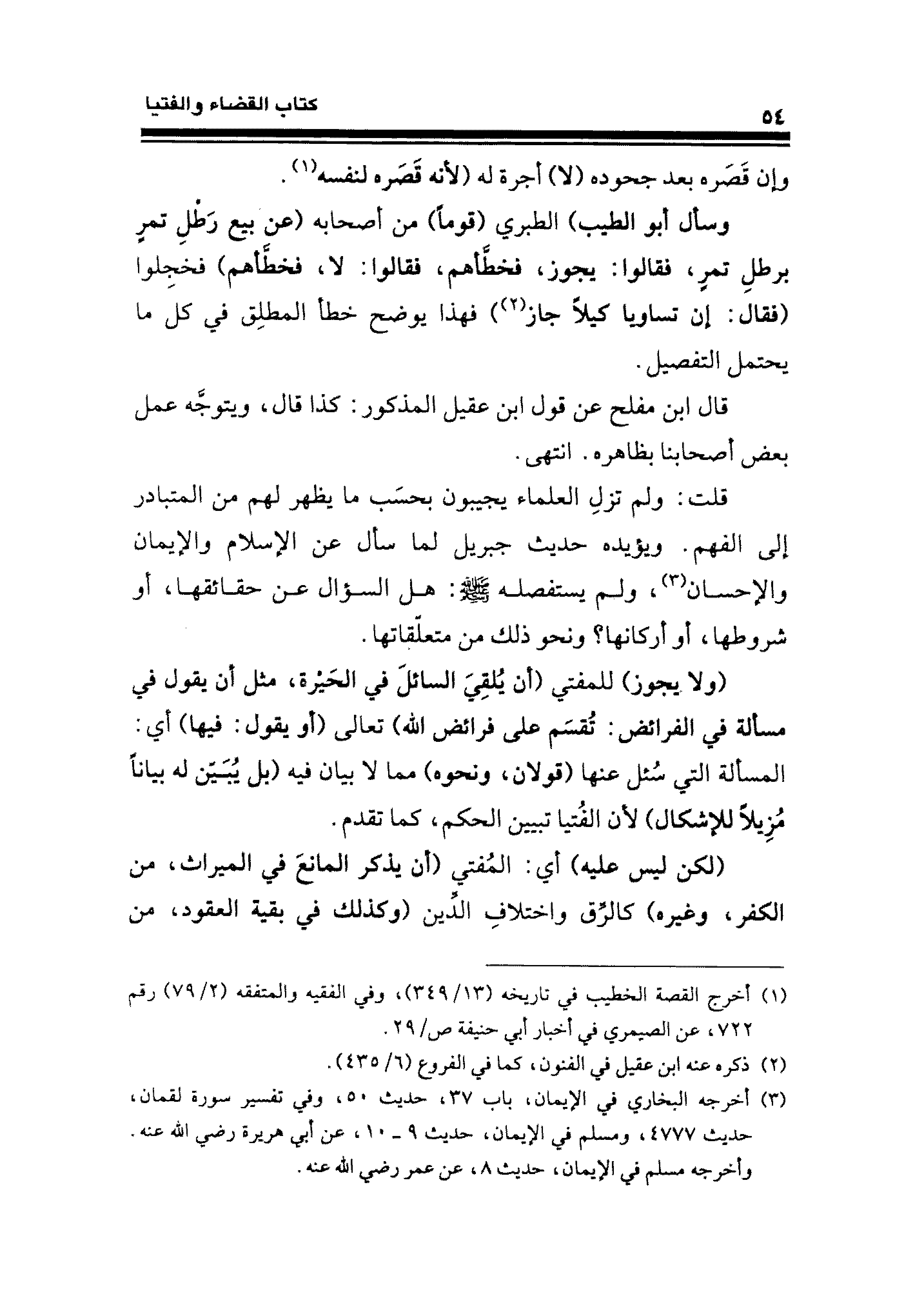 قلت: ولم تزلِ العلماء يجيبون بحسَب ما يظهر لهم من المتبادر إلى الفهم. ويؤيده حديث جبريل لما سأل عن الإسلام والإيمان والإحسان (¬٣)، ولم يستفصله - صلى الله عليه وسلم -: هل السؤال عن حقائقها، أو شروطها، أو أركانها؟ ونحو ذلك من متعلّقاتها.