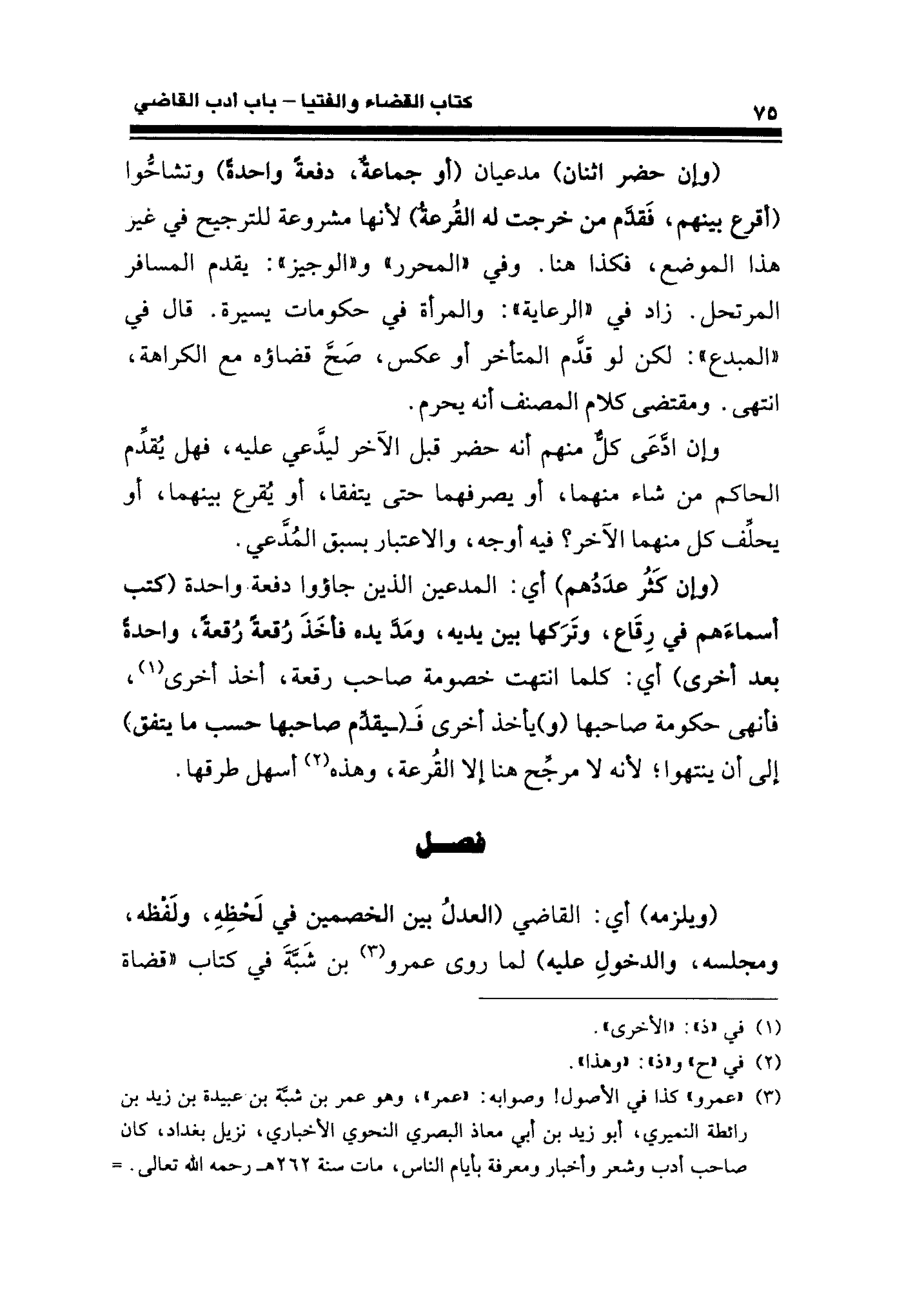 (وإن حضر اثنان) مدعيان (أو جماعة، دفعةَ واحدةً) وتشاحُّوا (أقرع بينهم، فقدَم من خرجت له القرعة) لأنها مشروعة للترجيح في غير هذا الموضع، فكذا هنا. وفي "المحرر" و "الوجيز": يقدم المسافر المرتحل. زاد في "الرِّعاية": والمرأة في حكومات يسيرة. قال في "المبدع": لكن لو قدم المتأخر أو عكس، صَحَّ قضاؤه مع الكراهة، انتهى. ومقتضى كلام المصنف أنَّه يحرم.