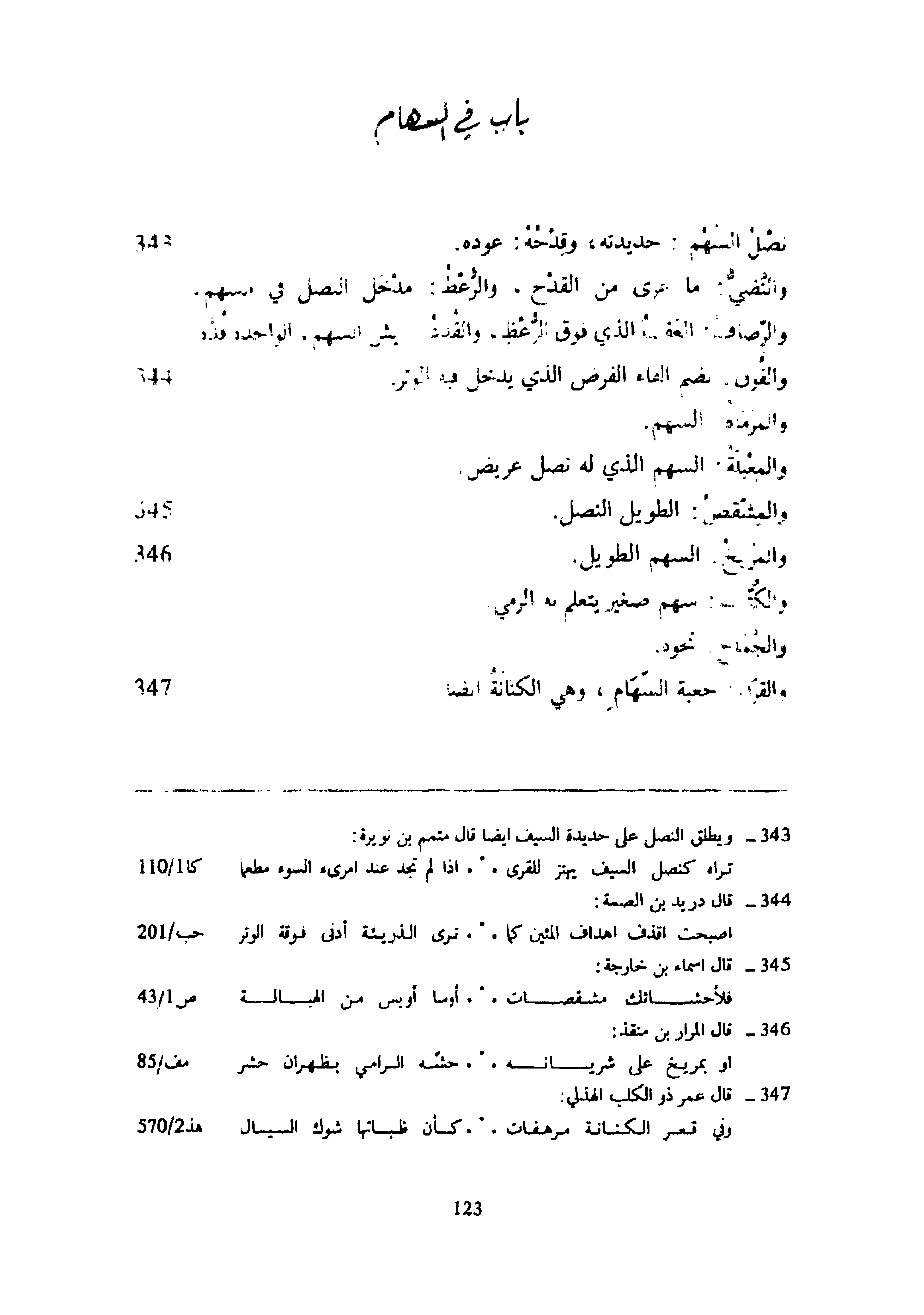 وَالْكتاب: سهم صَغِير يتَعَلَّم بِهِ الرَّمْي.