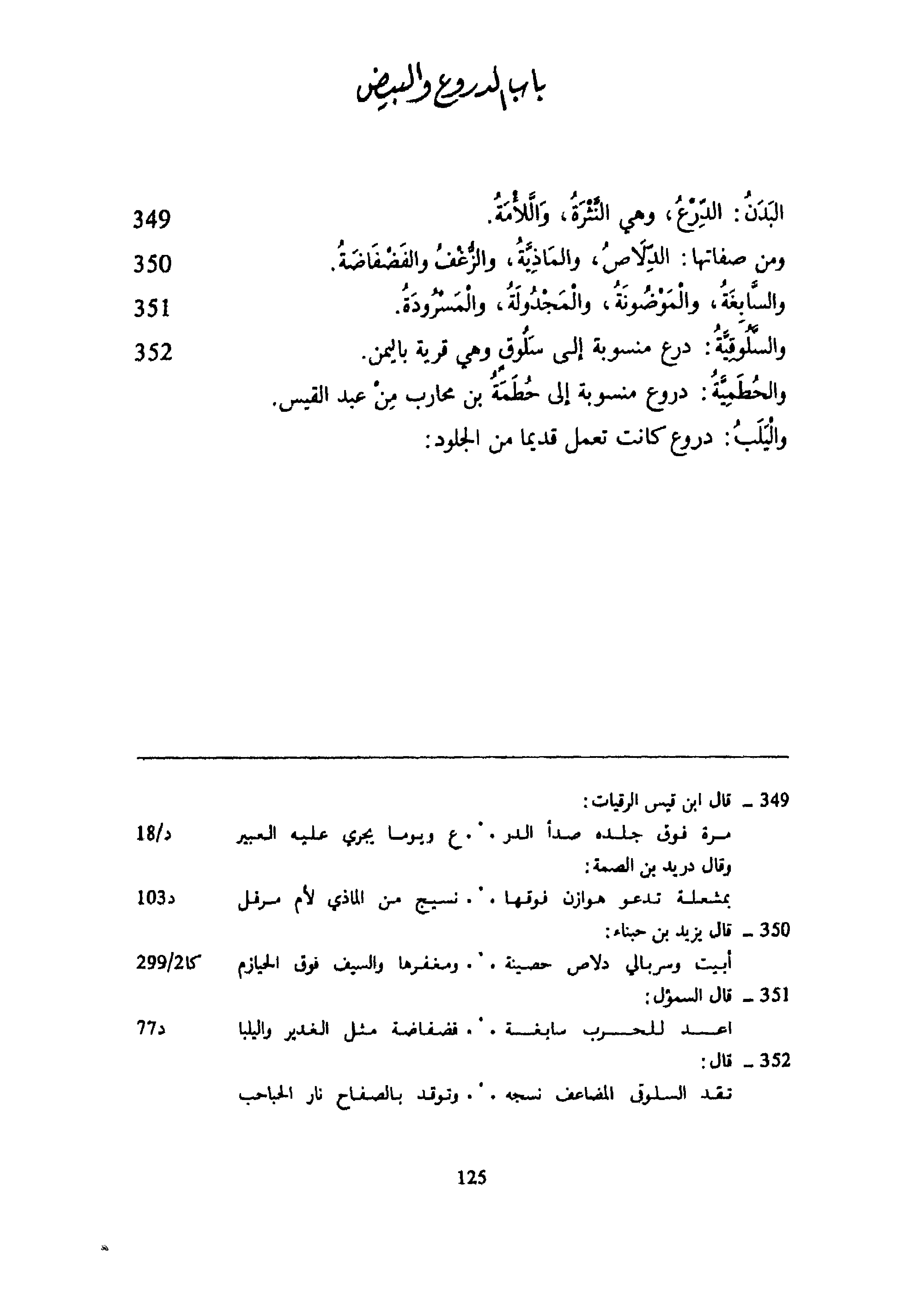 وَمن صفاتها: الدلاص، والماذية، والزغف والفضفاضة.