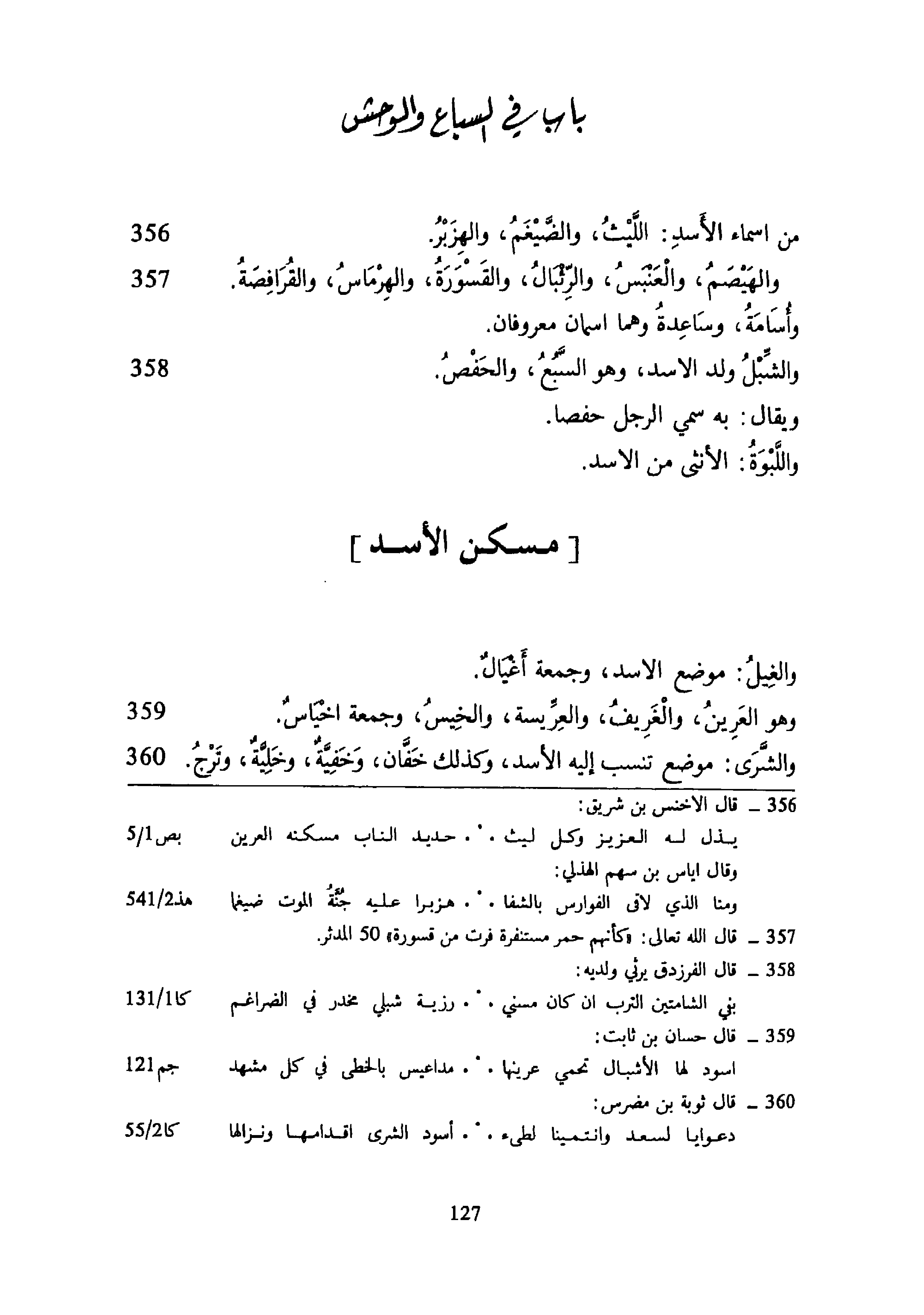 والهيصم، والعنبس، والرئبال، والقسورة، والهرماس، والقرافصة.