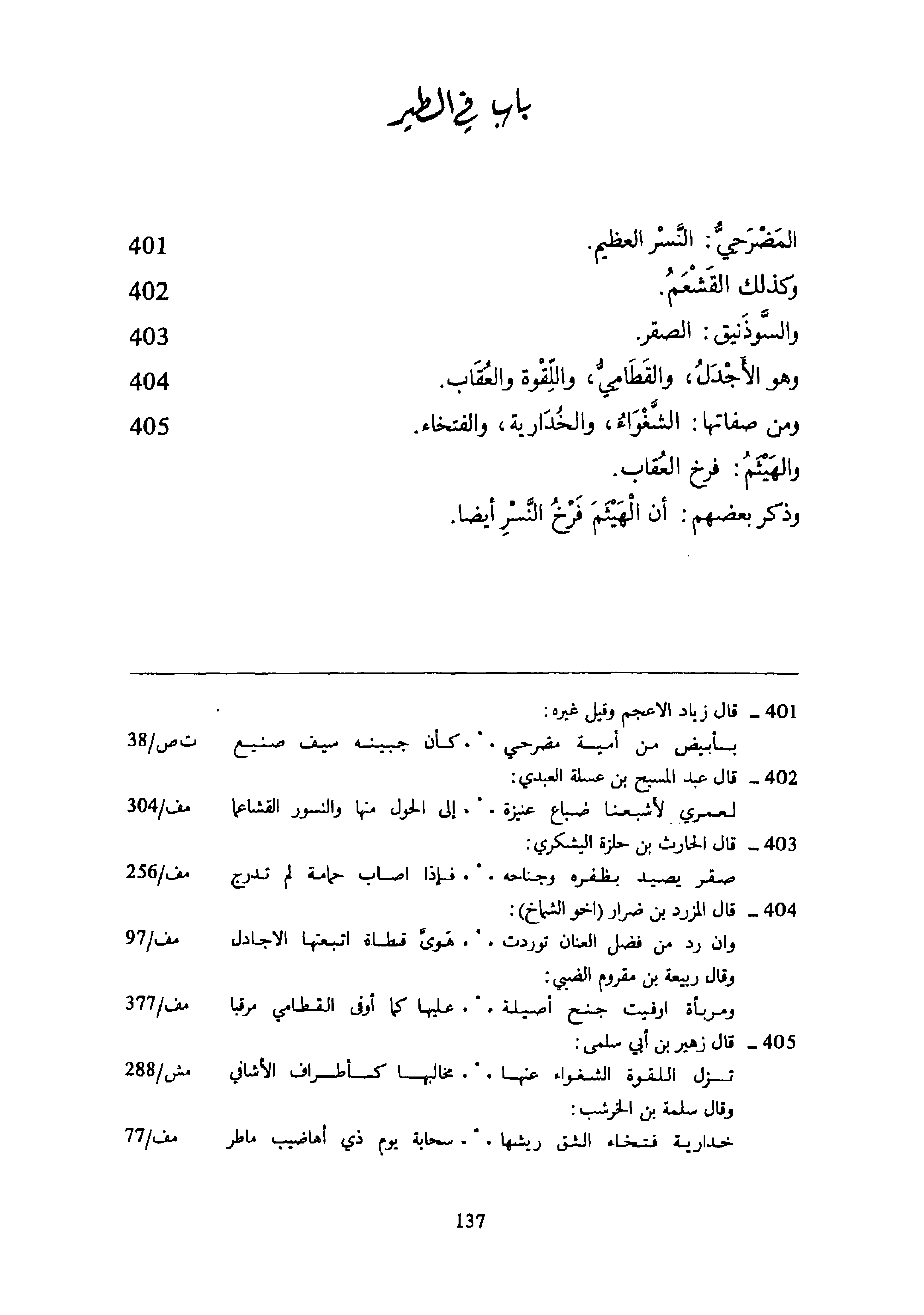 وَهُوَ الأجدل، والقطامي، واللقوة وَالْعِقَاب.
