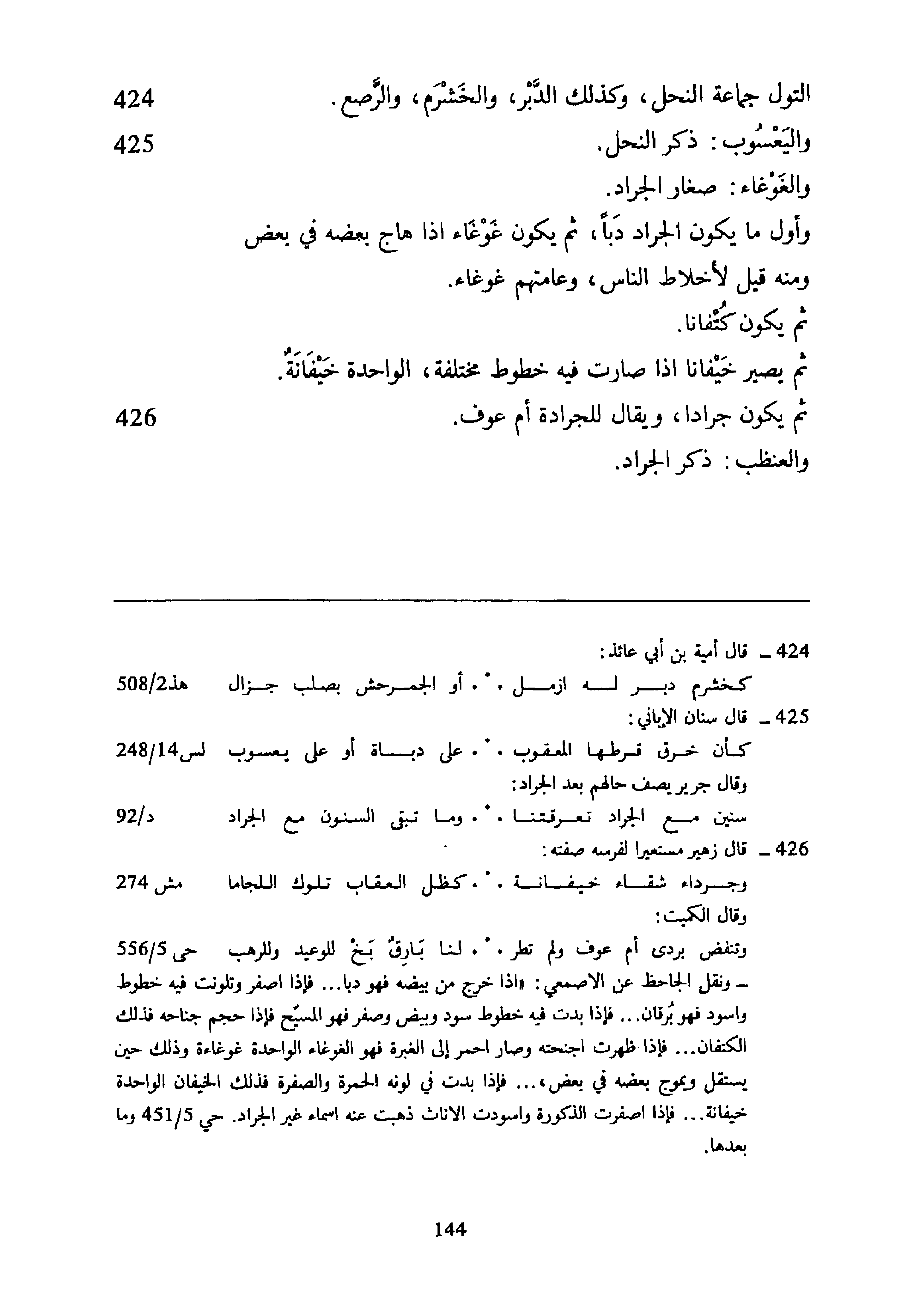 ثمَّ يكون جَرَادًا، وَيُقَال للجرادة أم عَوْف.