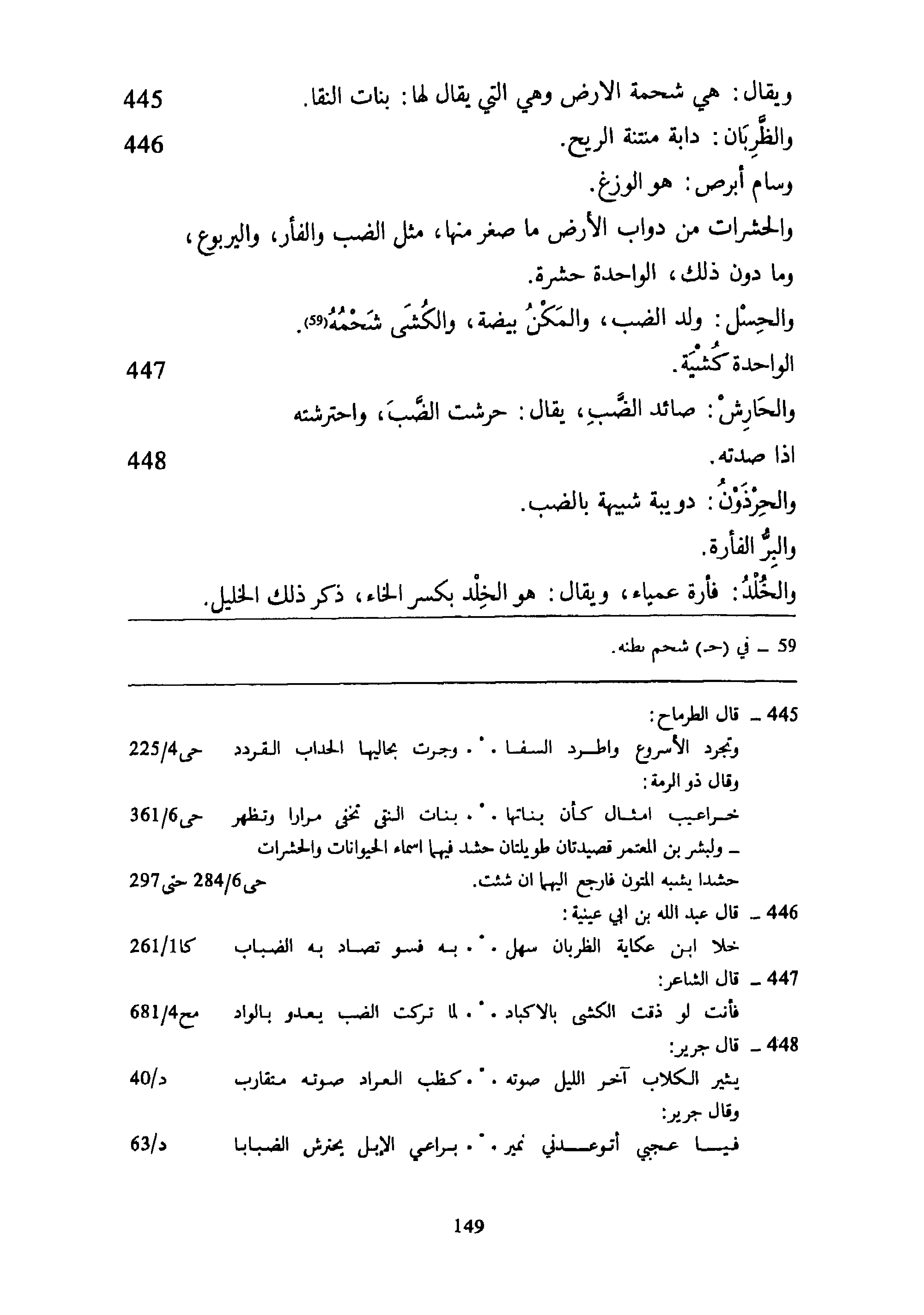 والحسل: ولد الضَّب، والمكن بَيْضَة، والكشى شحمه.