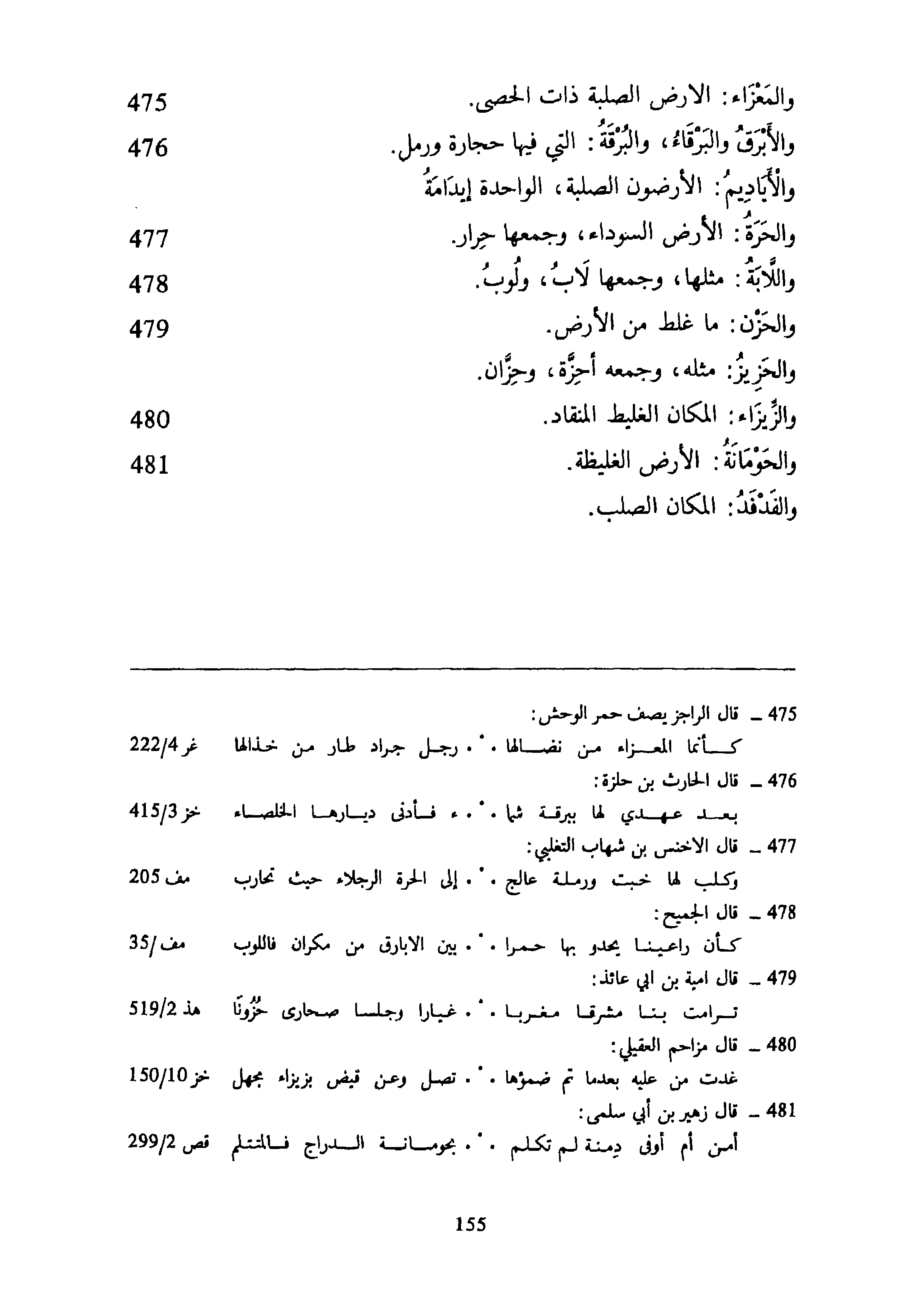 والمعزاء: الأَرْض الصلبة ذَات الْحَصَى.