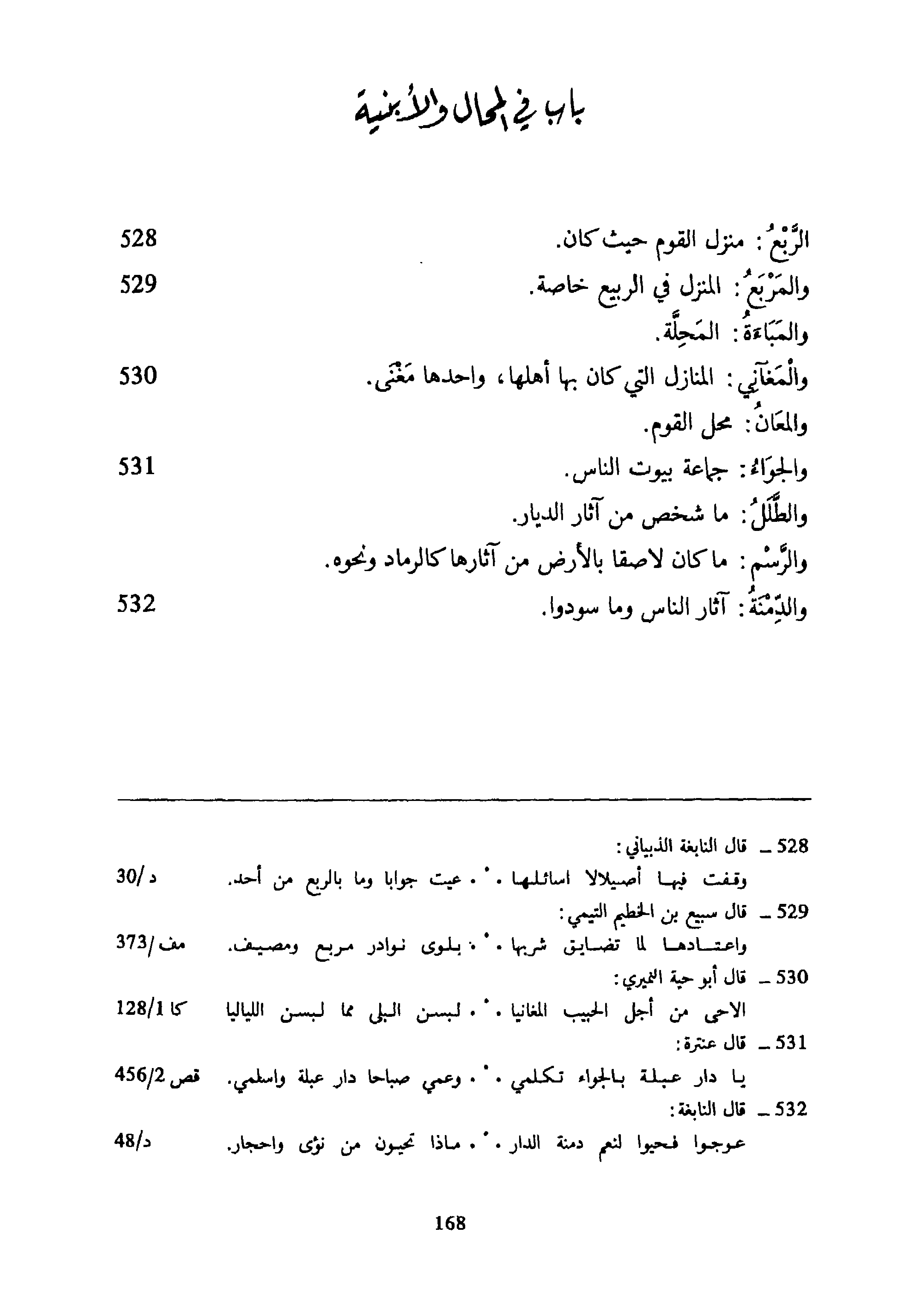 بَاب فِي الْمحَال والأبنية