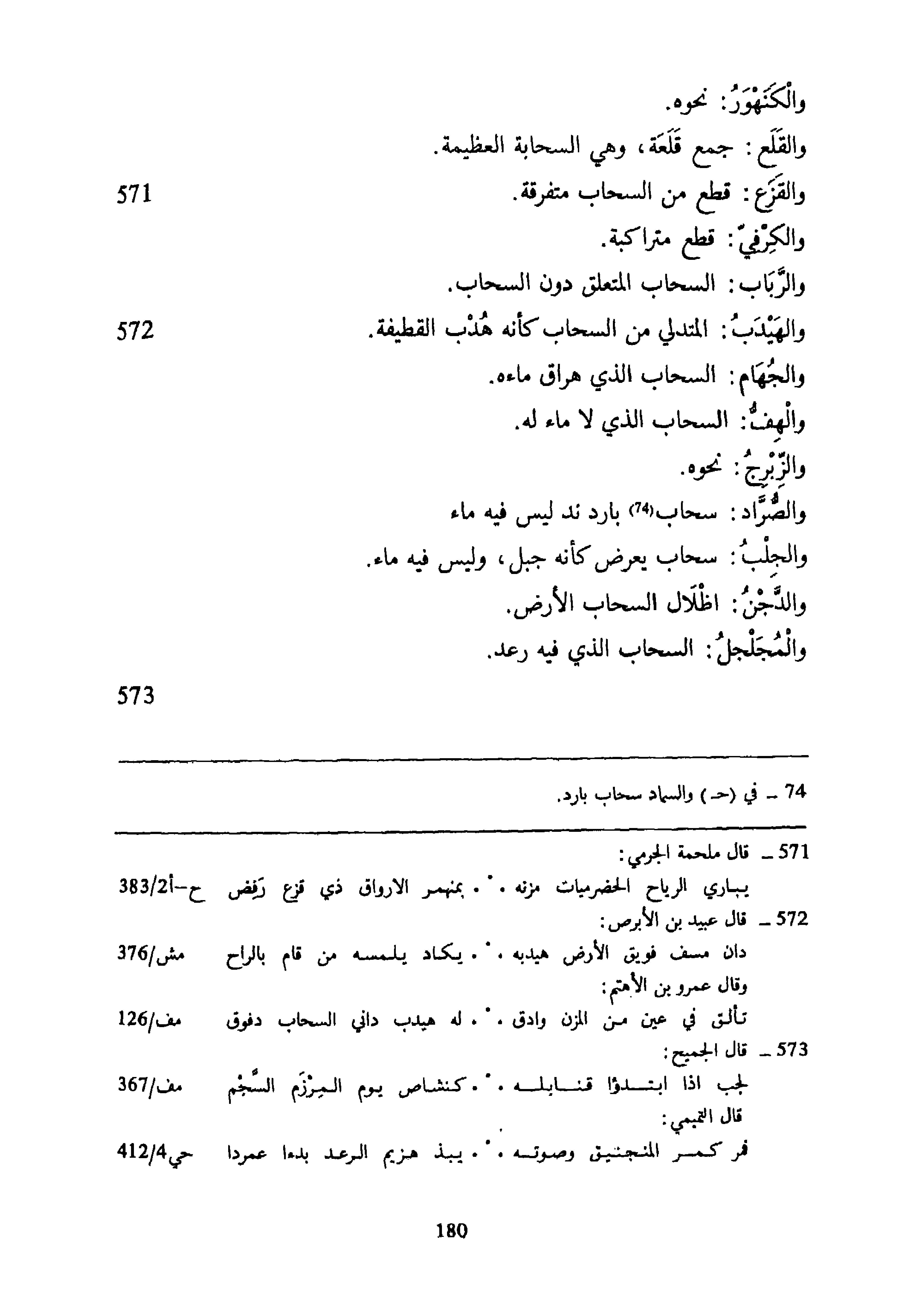 والصراد: سَحَاب بَارِد ند لَيْسَ فِيهِ مَاء.