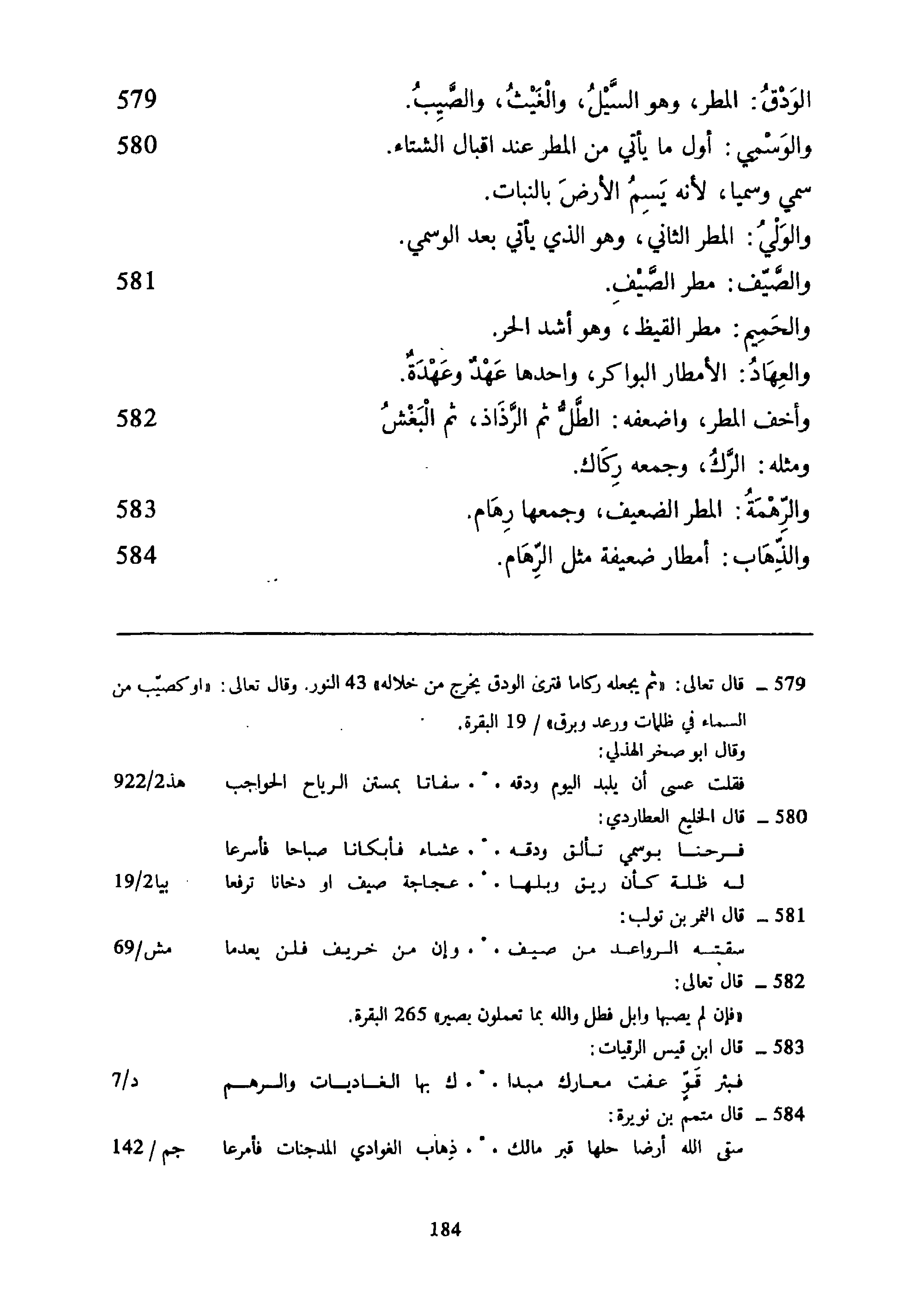 الودق: الْمَطَر، وَهُوَ السَّيْل، والغيث، والصيب.