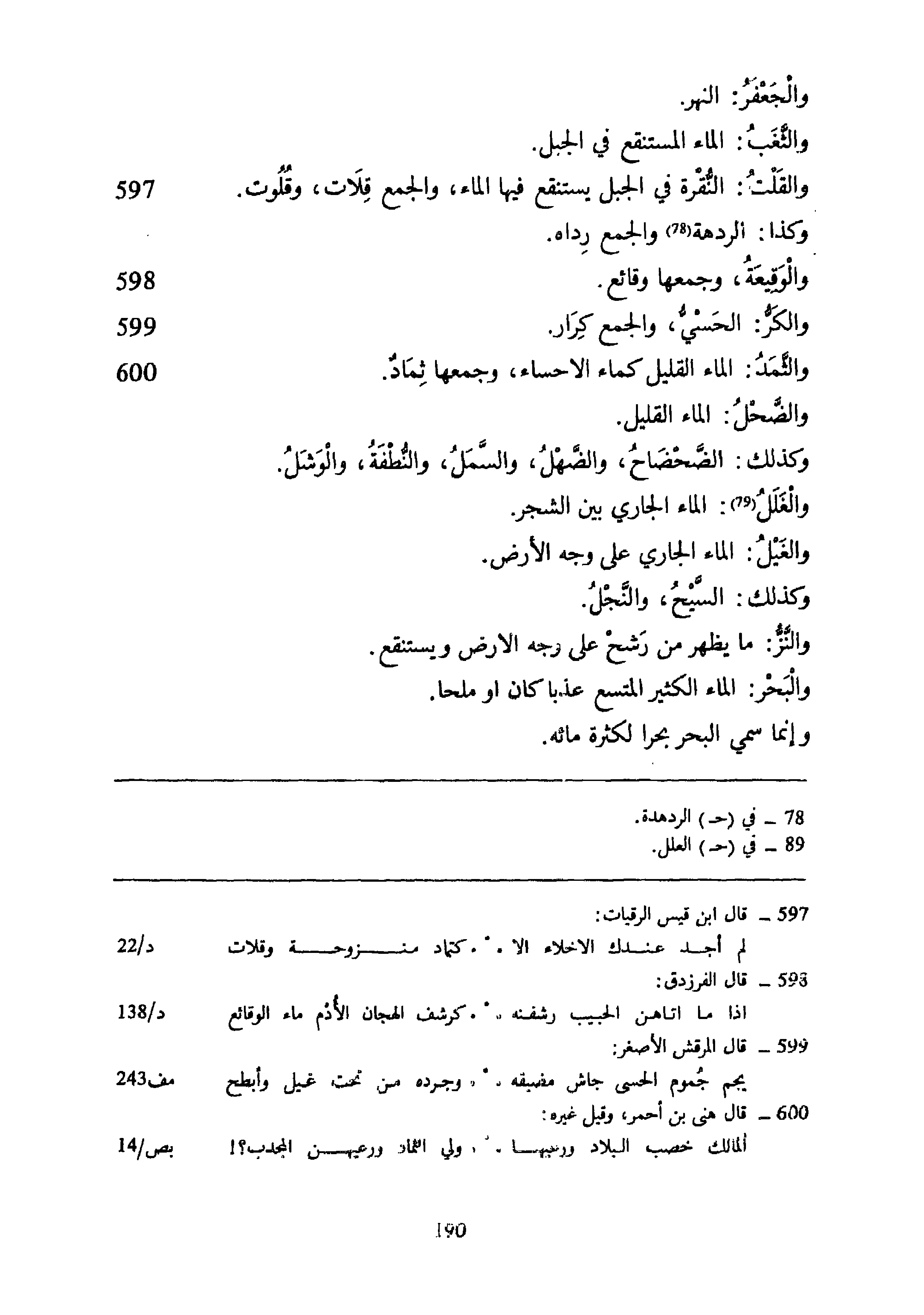 وَكَذَلِكَ: الضحضاح، والضهل، والسمل، والنطفة، والوشل.