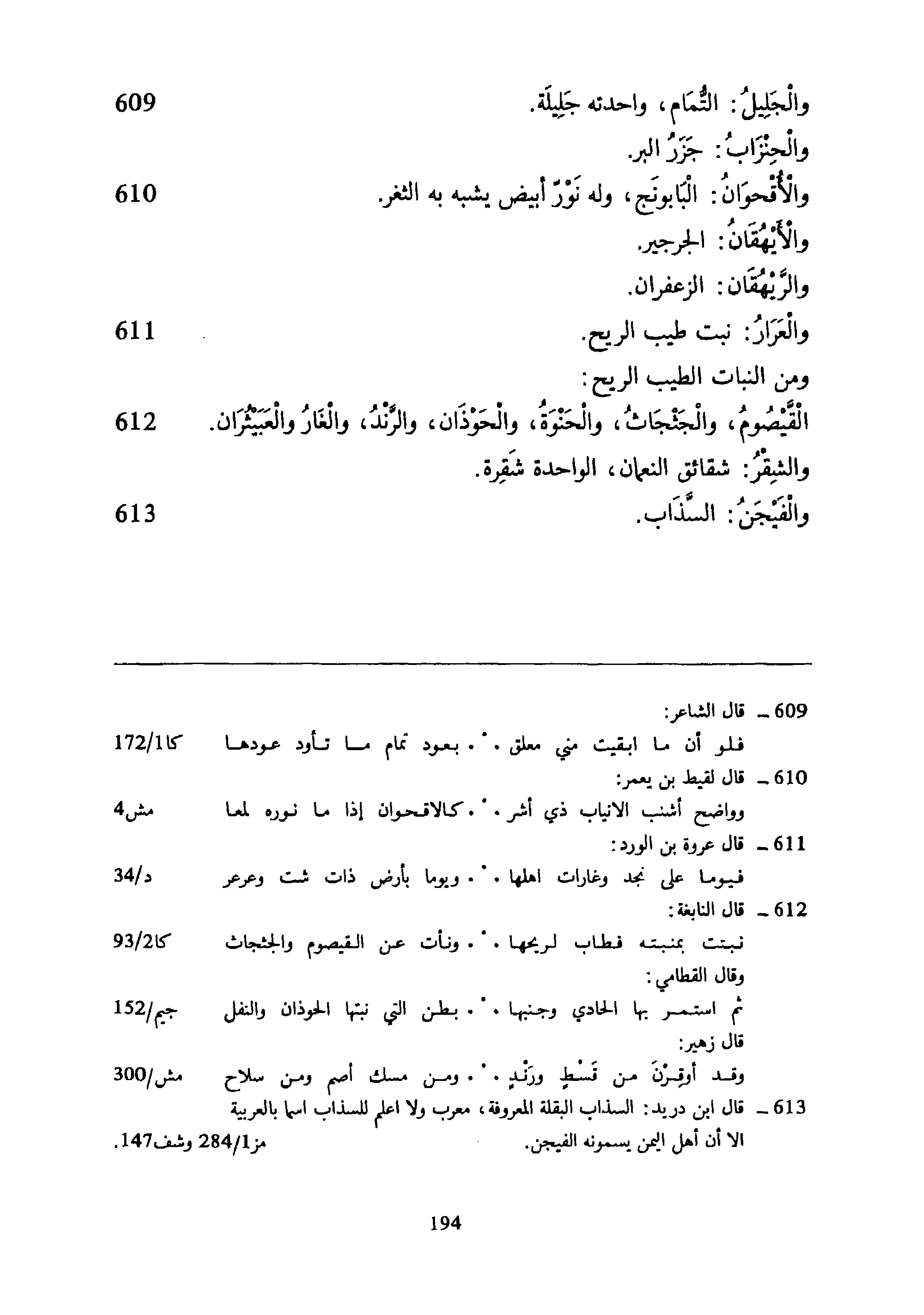 القيصوم، والجثجاث، والحنوة، والحوذان، والرند، والغار والعبيثران.