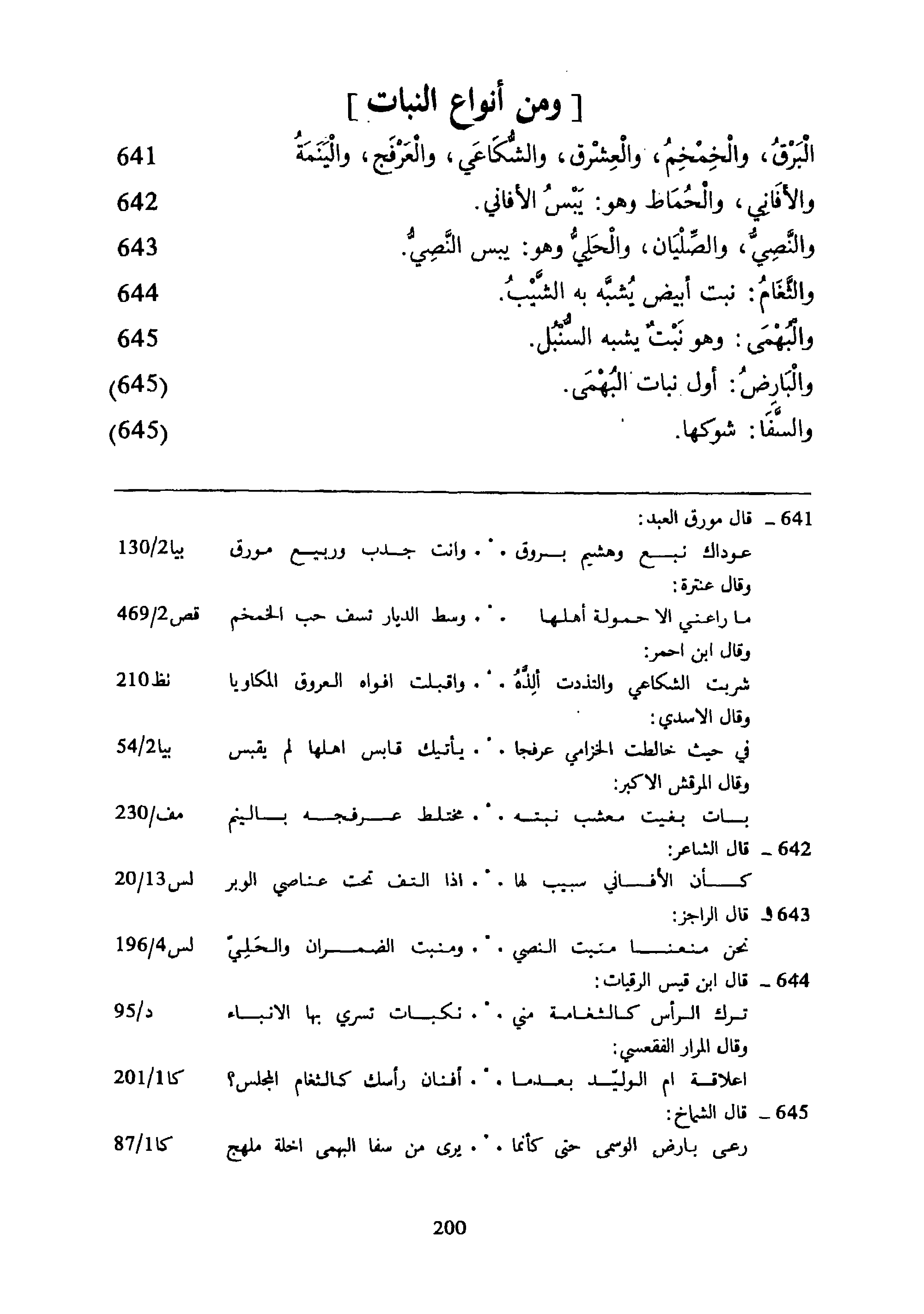 الْبَرْق، والخمخم، والعشرق، والشكاعي، والعرفج، والينمة والأفاني، والحماط وَهُوَ يبس الأفاني.