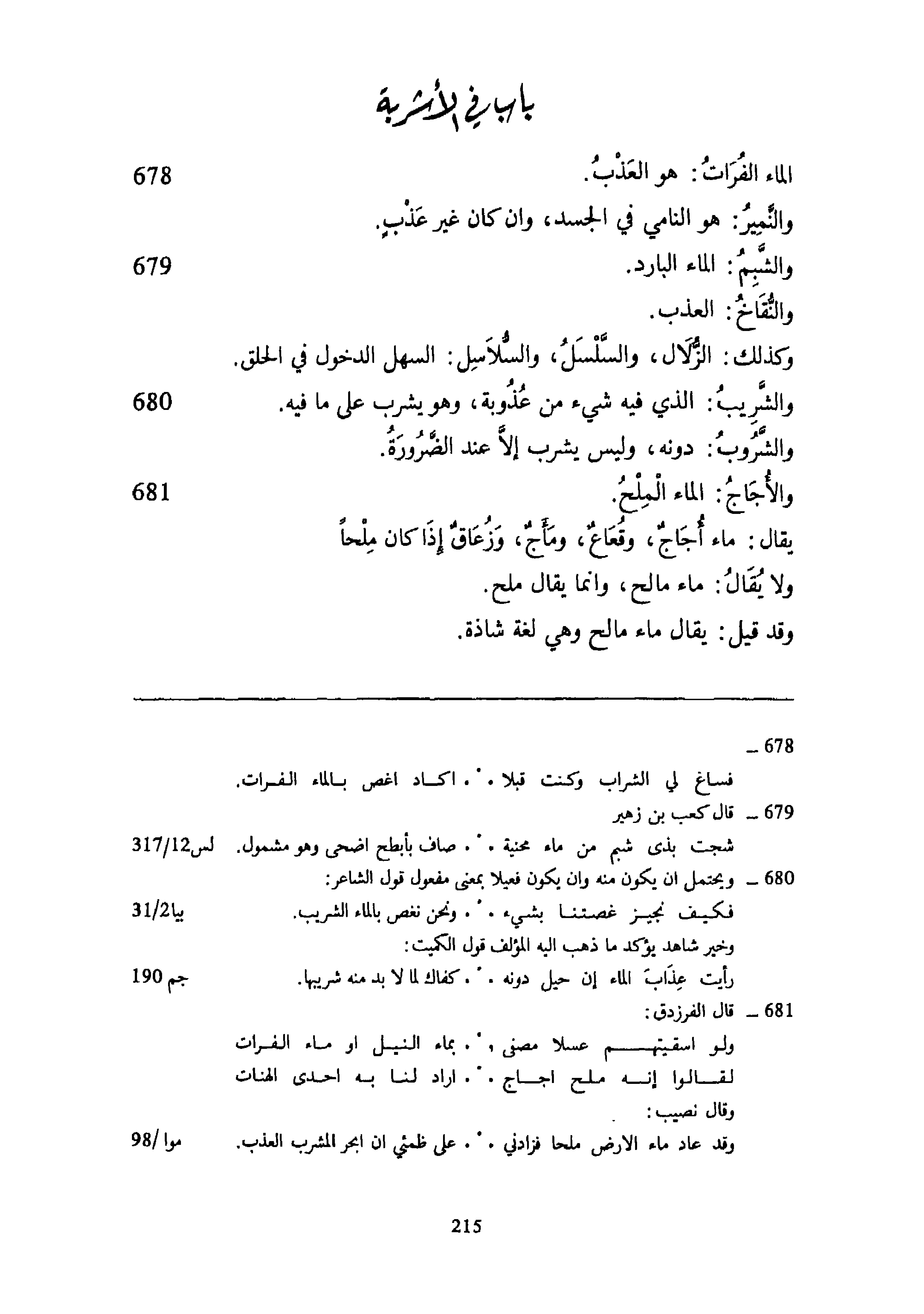 وَقد قيل: يُقَال مَاء مالح وَهِي لُغَة شَاذَّة.