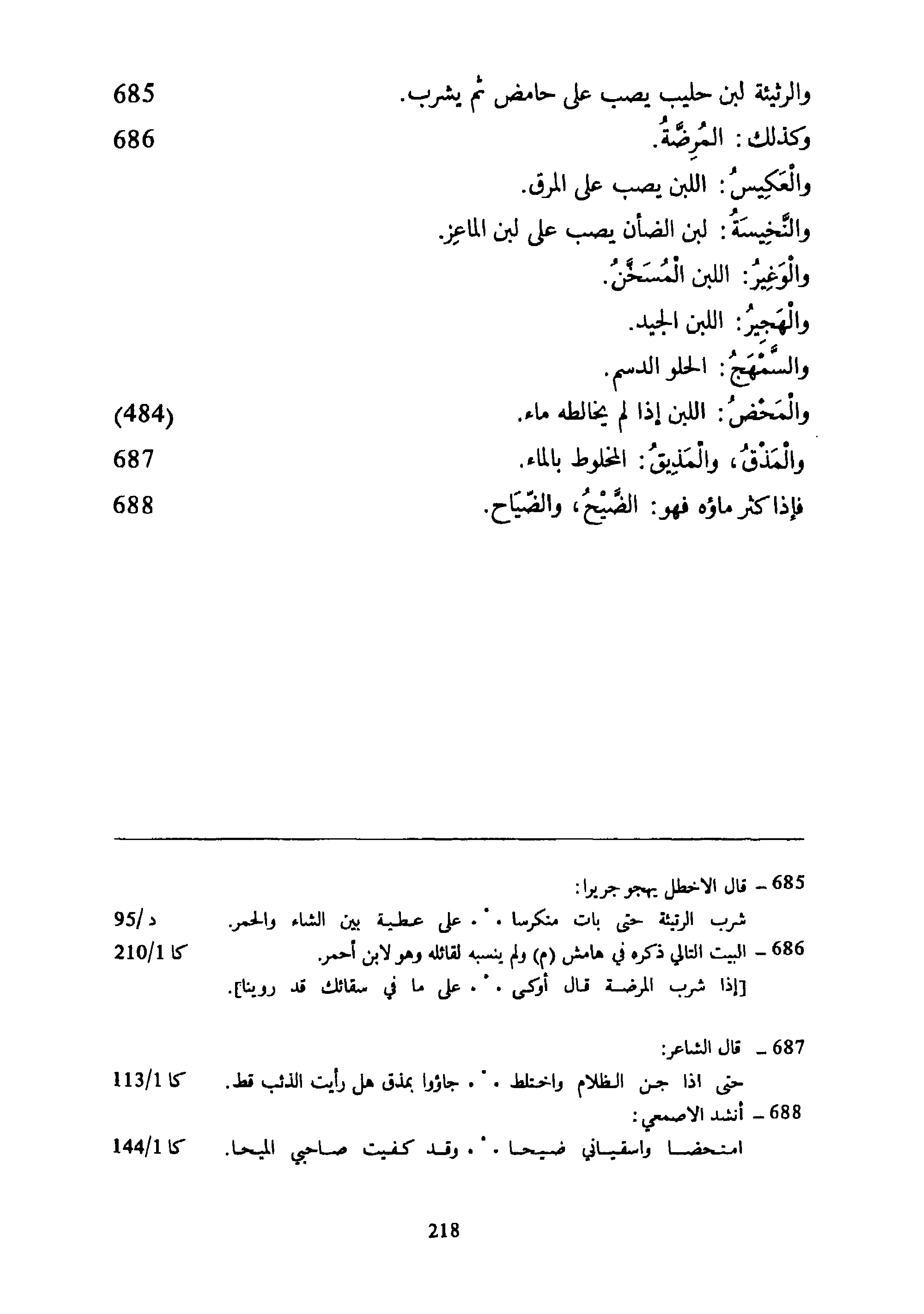 والرثيئة لبن حليب يصب على حامض ثمَّ يشرب.