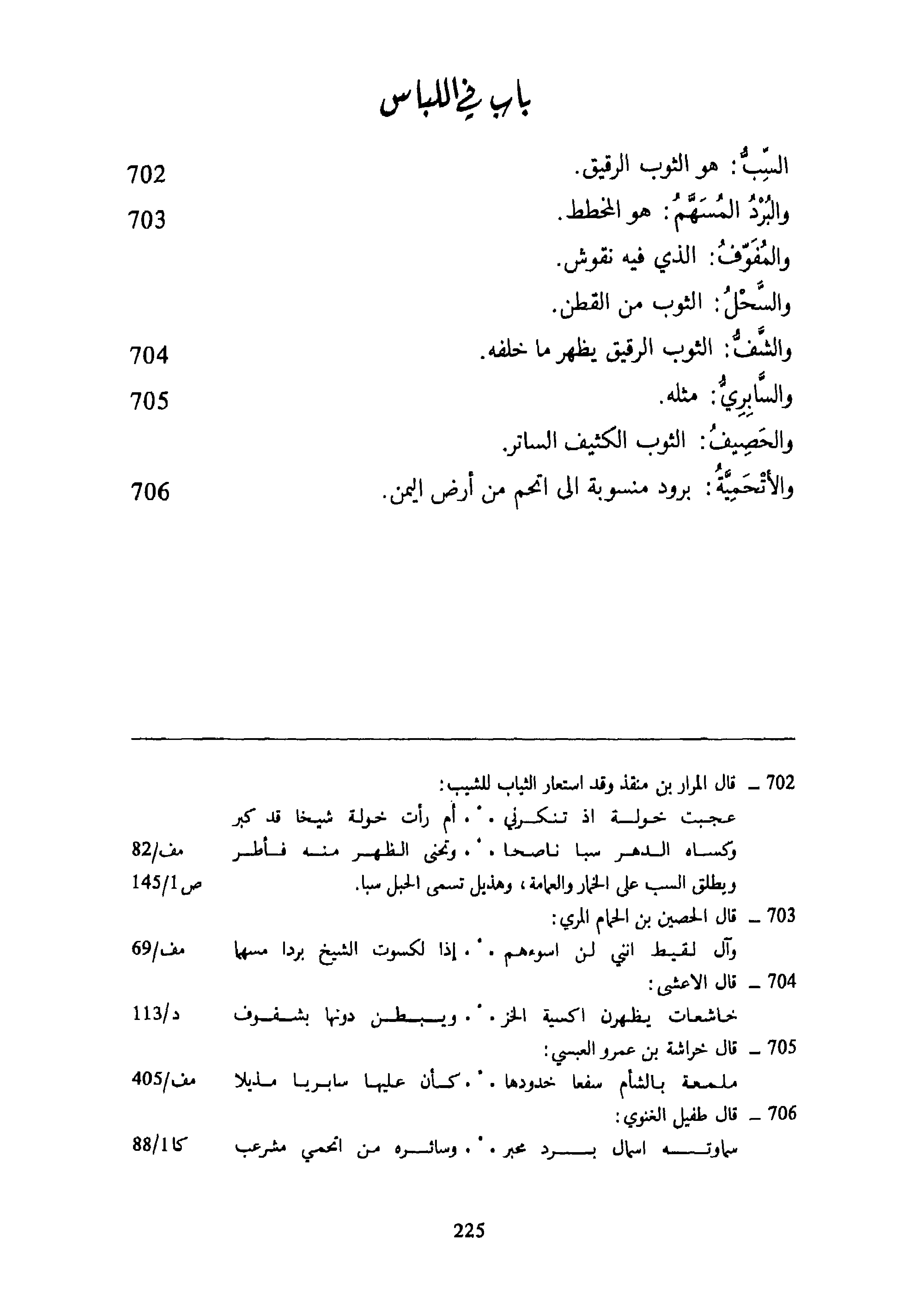 السب: هُوَ الثَّوْب الرَّقِيق.