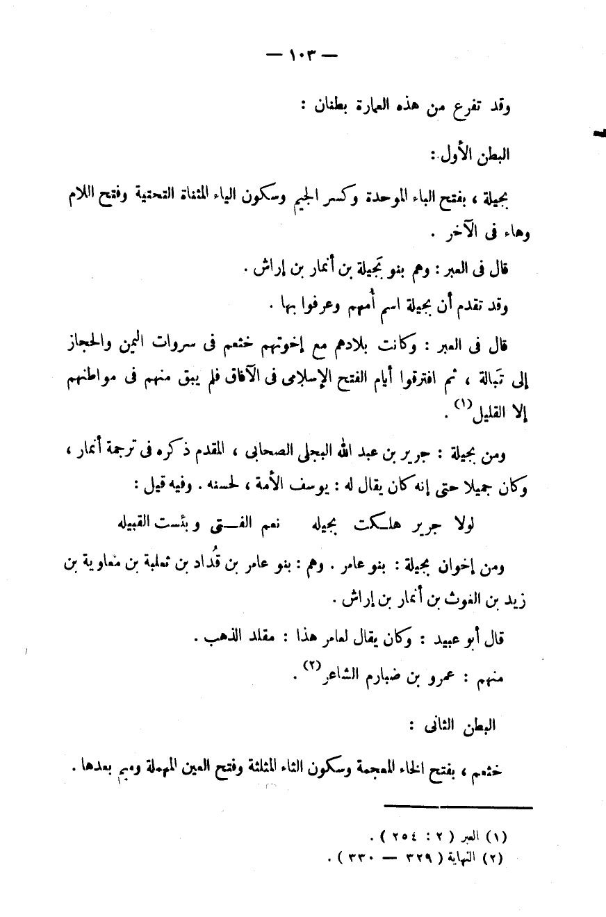 قال في العبر: وهم بنو بجيلة بن أنمار بن إراش.