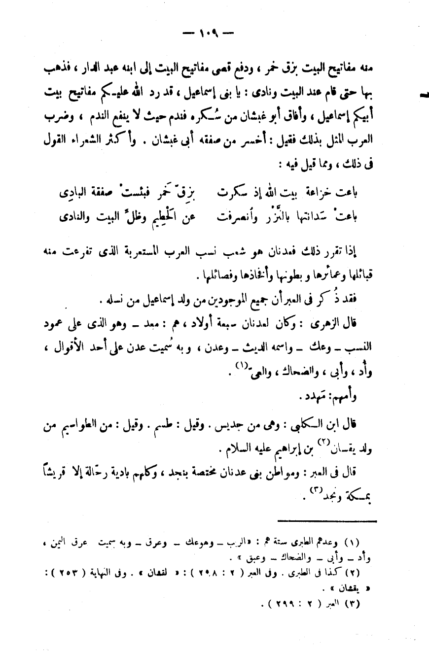 قال في العبر: ومواطن بني عدنان مختصة بنجد، وكلهم بادية رحّالة إلا قريشاً بمكة ونجد.