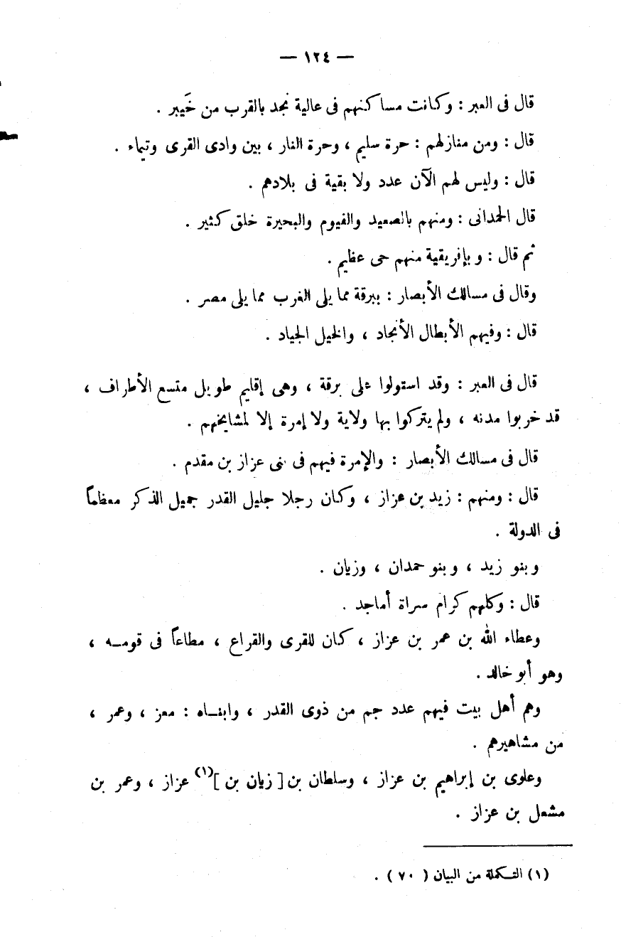 قال في مسالك الأبصار: والإمرة فيهم في بني عزاز بن مقدم.