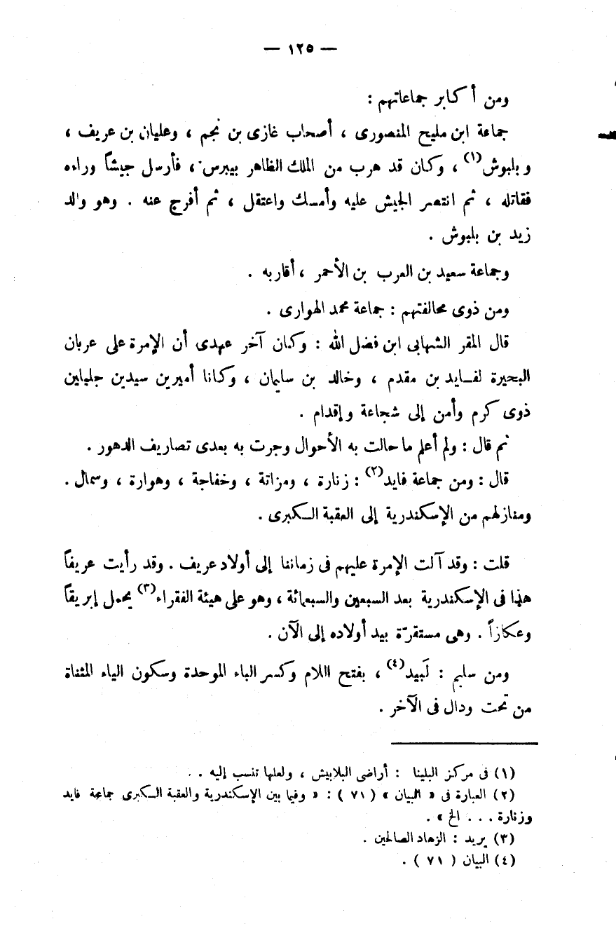 ومن أكابر جماعاتهم: جماعة ابن مليح المنصوري، أصحاب غازي بن نجم، وعليان بن عريف، وبلبوش، وكان قد هرب من الملك الظاهر بيبرس، فأرسل جيشاًوراءه فقاتله، ثم انتصر الجيش عليه وأمسك واعتقل، ثم أفرج عنه. وهو والد زيد بن بلبوش.