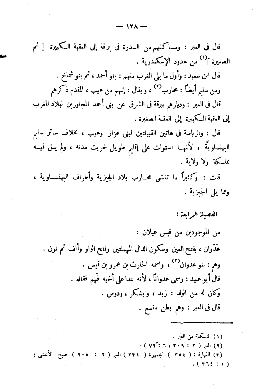 قال: والرياسة في هاتين القبيلتين لبني عزاز وهيب، بخلاف سائر سليم البهنساويَّة، لأنها استولت على إقليم طويل خربت مدنه، ولم يبق فيه مملكة ولا ولاية.