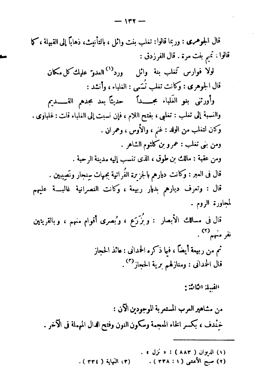 قال الجوهري: وربما قالوا: تغلب بنت وائل، بالتأنيث، ذهاباً إلى القيبلة، كما قالوا: تميم بنت مرة. قال الفرزدق: