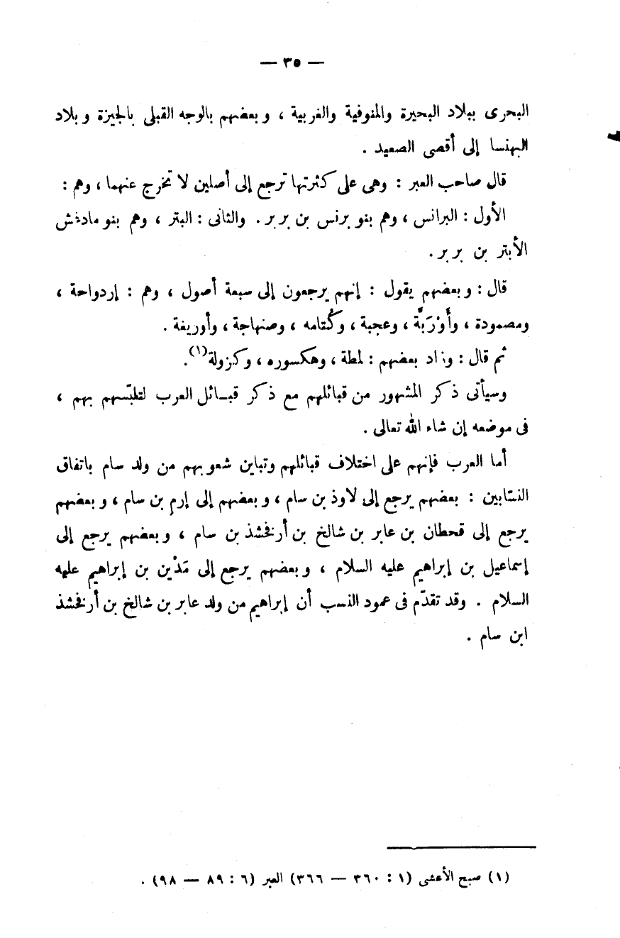قال صاحب العبر: وهي على كثرتها ترجع إلى أصلين لا تخرج عنهما، وهم: الأول: البرانس، وهم بنو برنس من بربر. والثاني: البتر، وهم بنو مادغش الأبتر بن بربر.