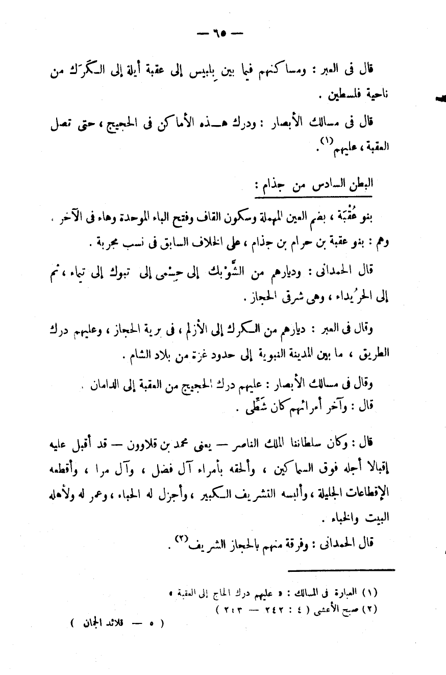 قال في العبر: ومساكنهم فيما بين بلبيس إلى عقبة أيلة إلى الكرك من ناحية فلسطين.