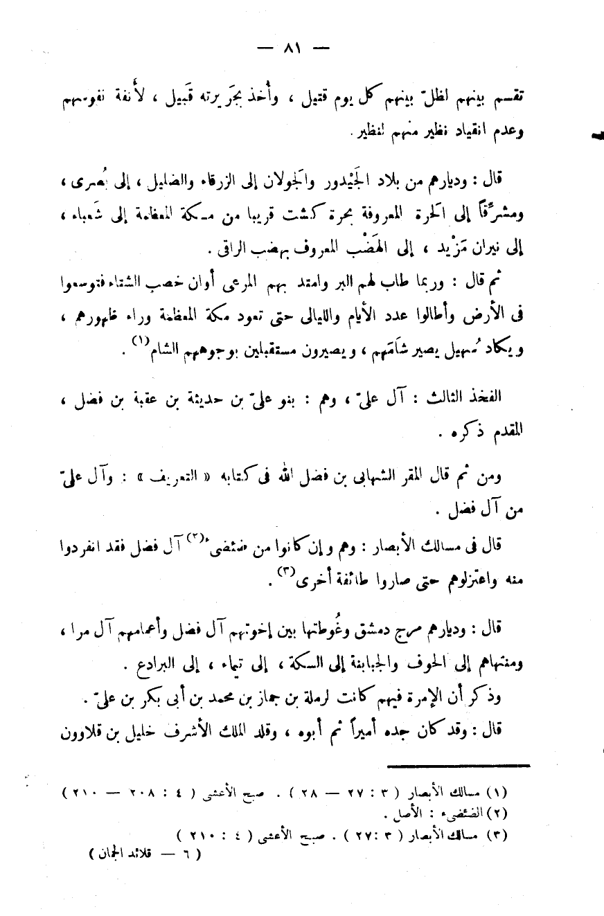 ومن ثم قال المقر الشهابي بن فضل الله في كتابه " التعريف ": وآل عليّ من آل فضل.