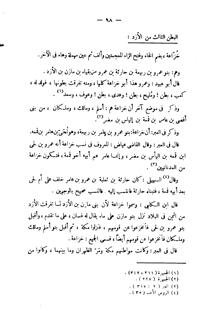 وذكر في العبر: أن خزاعة: بنو عمرو بن عامر بن ربيعة، وهو لُحيّ بن عامر بن قمعة.