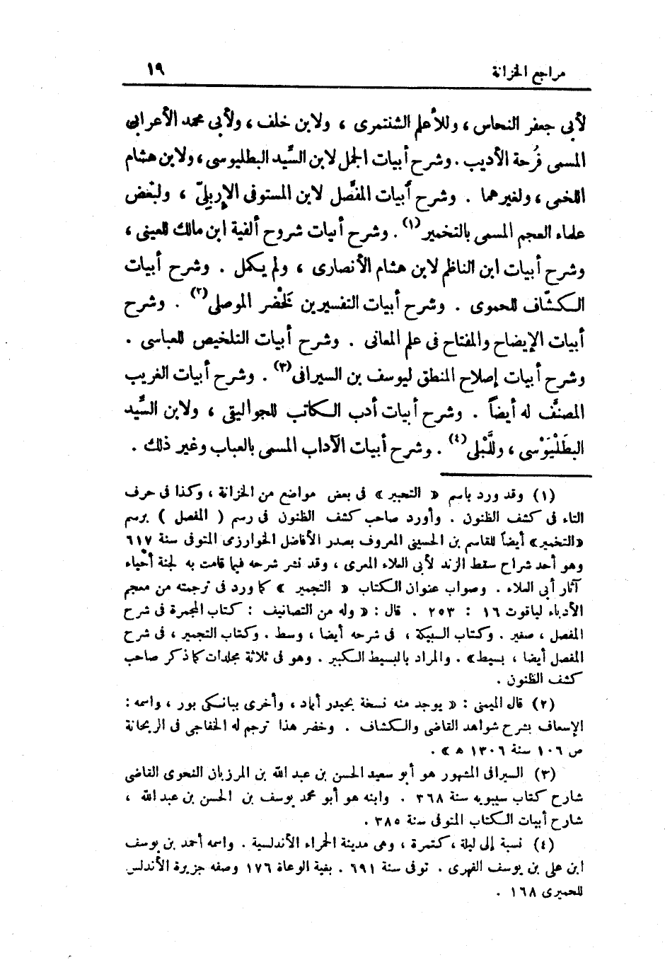 لأبي جَعْفَر النّحاس وللأعلم الشنتمري وَلابْن خلف وَلأبي مُحَمَّد الْأَعرَابِي الْمُسَمّى فرحة الأديب وَشرح أَبْيَات الْجمل لِابْنِ السَّيِّد البطليوسي وَلابْن هِشَام اللَّخْمِيّ ولغيرهما وَشرح أَبْيَات الْمفصل لِابْنِ المستوفي الإربلي ولبعض عُلَمَاء الْعَجم الْمُسَمّى بالتخمير وَشرح أَبْيَات شُرُوح ألفية ابْن مَالك للعيني وَشرح أَبْيَات ابْن النَّاظِم لِابْنِ هِشَام الْأنْصَارِيّ وَلم يكمل وَشرح أَبْيَات الْكَشَّاف