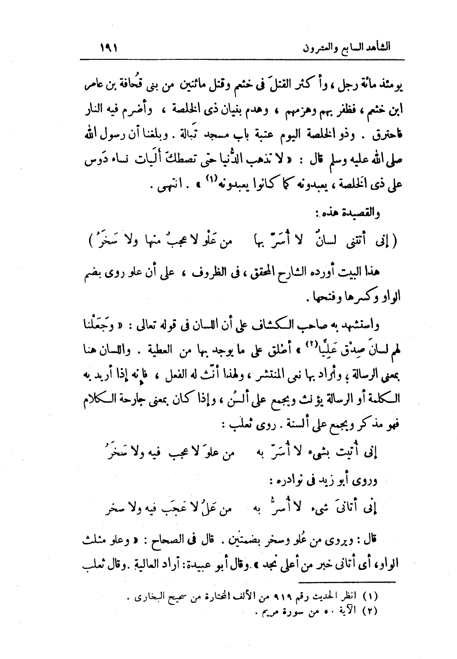 (إِنِّي أَتَتْنِي لِسَان لَا أسر بهَا ... من علو لَا عجب مِنْهَا وَلَا سخر)