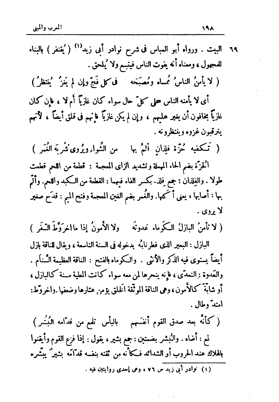 الْبَيْت وَرَوَاهُ أَبُو الْعَبَّاس فِي شرح نَوَادِر أبي زيد يقتفر بِالْبِنَاءِ للْمَجْهُول وَمَعْنَاهُ أَنه يفوت النَّاس فَيتبع وَلَا يلْحق
