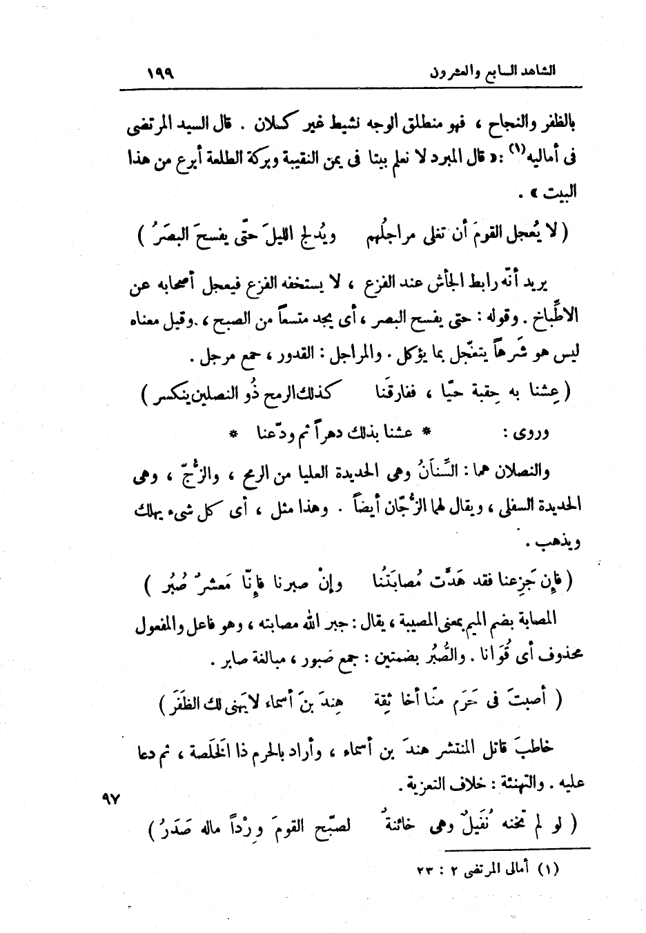 بالظفر والنجاح فَهُوَ منطلق الْوَجْه نشيط غير كسلان قَالَ السَّيِّد المرتضى فِي أمالية قَالَ الْمبرد لَا نعلم بَيْتا فِي يمن النقيبة وبركه الطلعة أبرع من هَذَا الْبَيْت