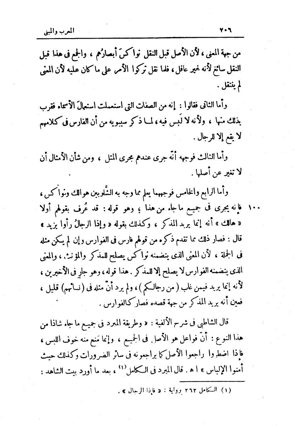 قَالَ الْمبرد فِي الْكَامِل بعد مَا أورد بَيت الشَّاهِد