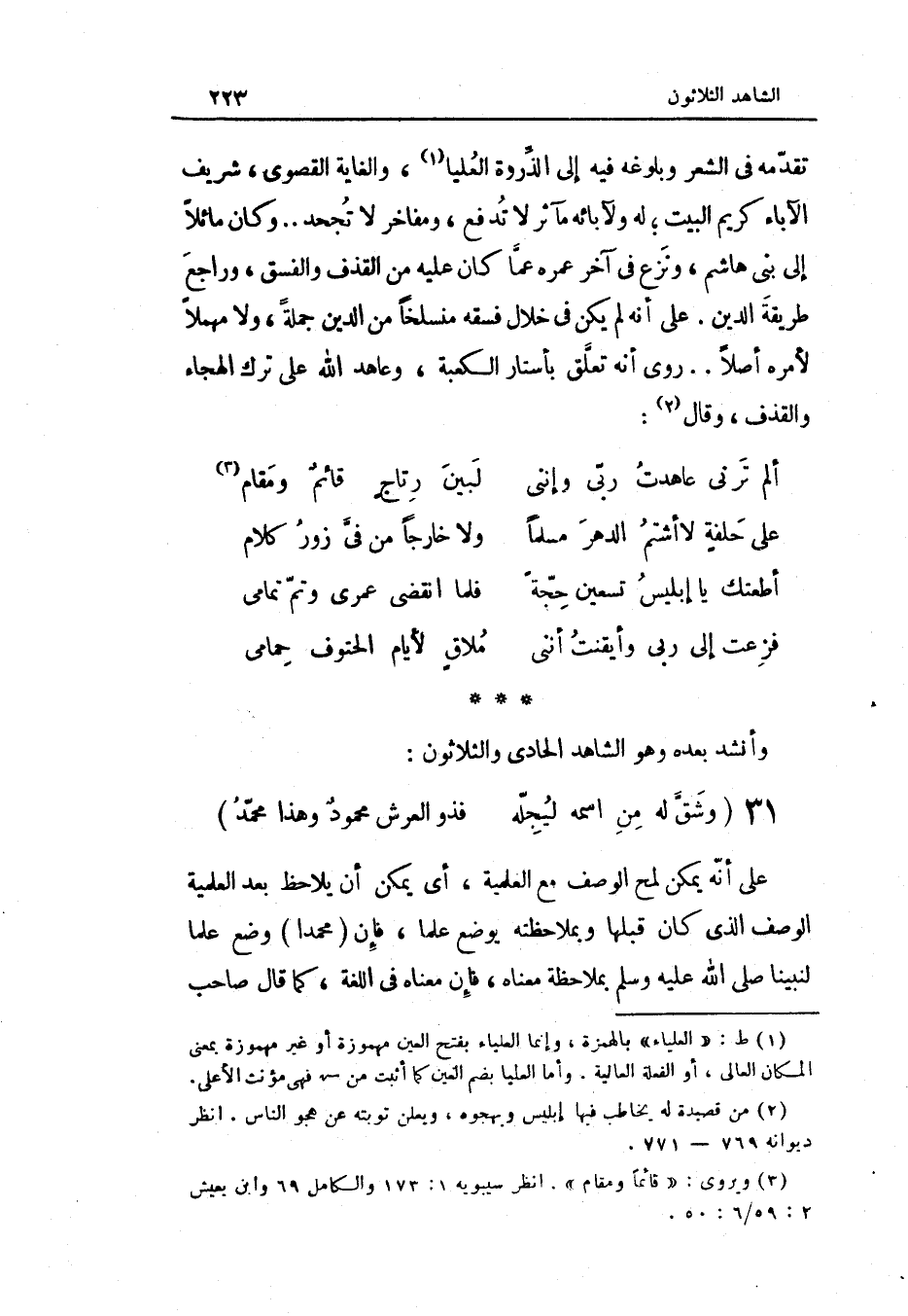 وَأنْشد بعده وَهُوَ الشَّاهِد الْحَادِي وَالثَّلَاثُونَ (الطَّوِيل)