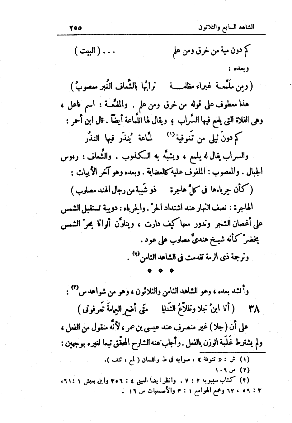 الهاجرة نصف النَّهَار عِنْد اشتداد الْحر والحرباء دويبة تسْتَقْبل الشَّمْس على أَغْصَان الشّجر وتدور مَعهَا كَيفَ دارت ويتلون ألوانا بَحر الشَّمْس يخضر كَأَنَّهُ شيخ هندي مصلوب على عود وترجمة ذِي الرمة تقدّمت فِي الشَّاهِد الثَّامِن وَأنْشد بعده وَهُوَ الشَّاهِد الثَّامِن وَالثَّلَاثُونَ وَهُوَ من شَوَاهِد س (الوافر)
