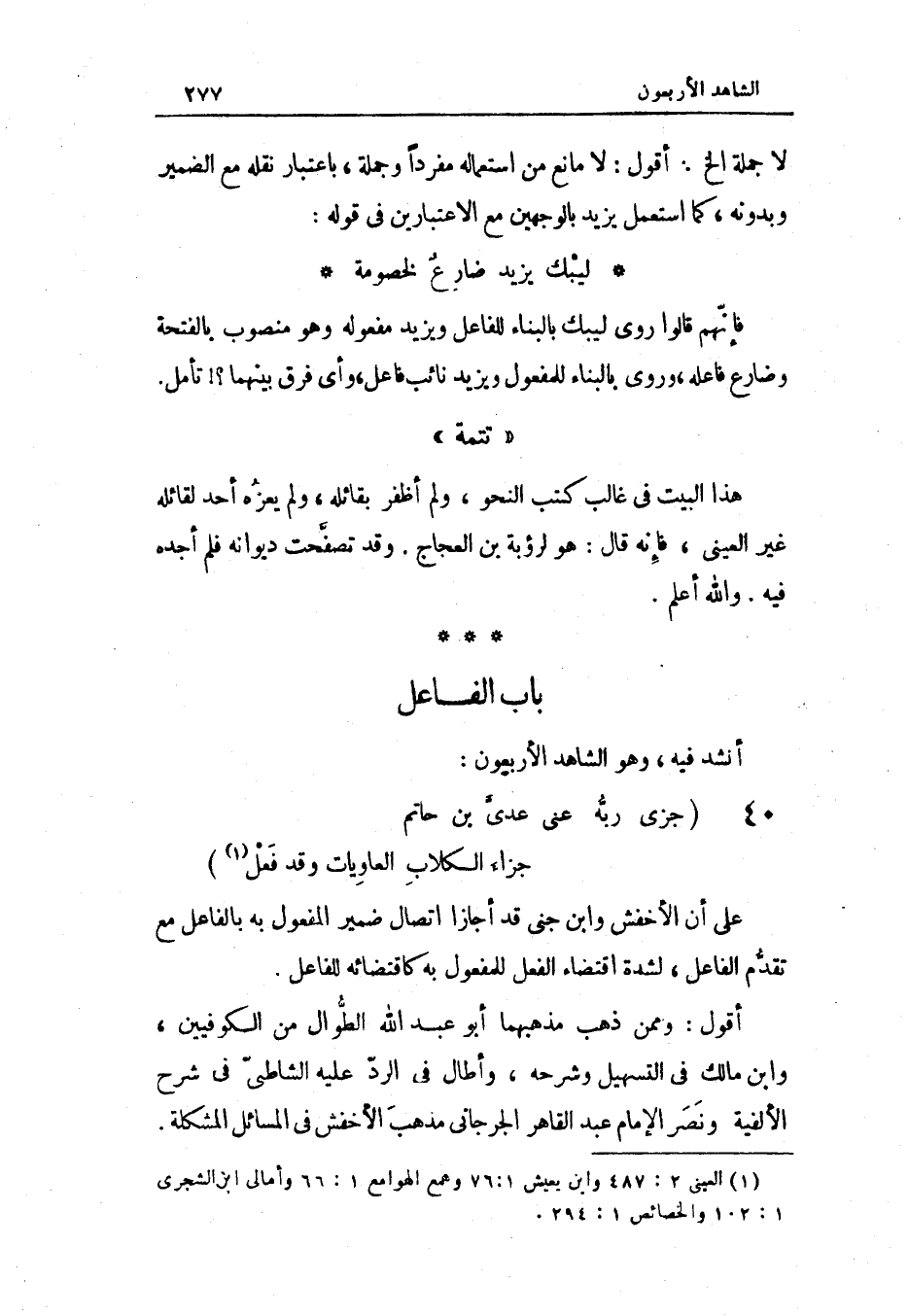 أنْشد فِيهِ وَهُوَ الشَّاهِد الْأَرْبَعُونَ (الطَّوِيل)