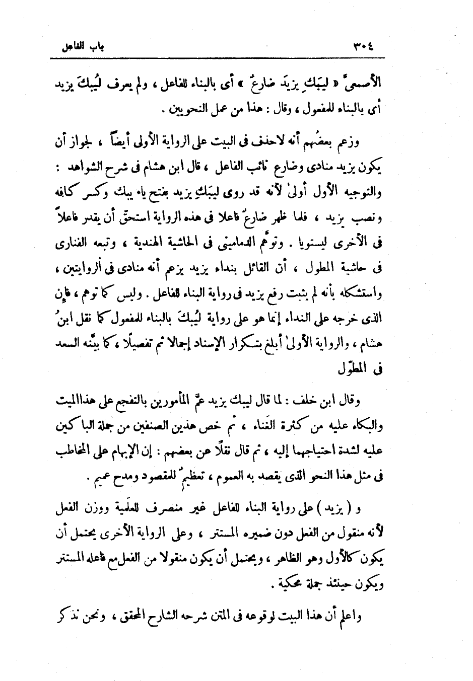الْأَصْمَعِي ليبك يزِيد ضارع أَي بِالْبِنَاءِ للْفَاعِل وَلم يعرف ليبك يزِيد أَي بِالْبِنَاءِ للْمَفْعُول وَقَالَ هَذَا من عمل النَّحْوِيين وَزعم بَعضهم أَنه لَا حذف فِي الْبَيْت على الرِّوَايَة الأولى أَيْضا لجَوَاز أَن يكون يزِيد منادى وضارع نَائِب الْفَاعِل قَالَ ابْن هِشَام فِي شرح الشواهد والتوجيه