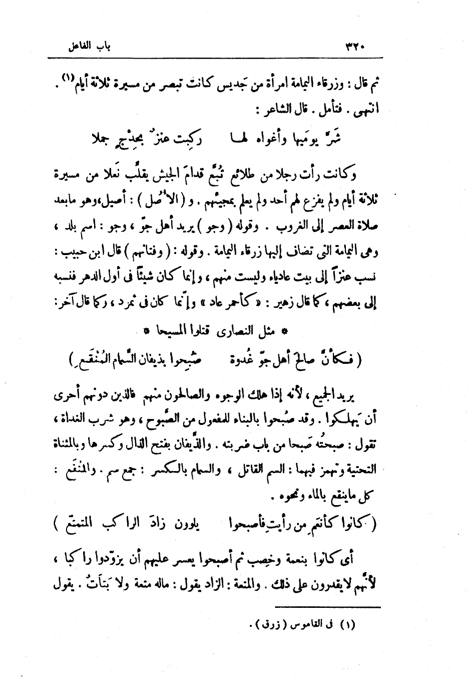ثمَّ قَالَ وزرقاء الْيَمَامَة امْرَأَة من جديس كَانَت تبصر من مسيرَة ثَلَاثَة أَيَّام انْتهى فَتَأمل قَالَ الشَّاعِر (الرمل)