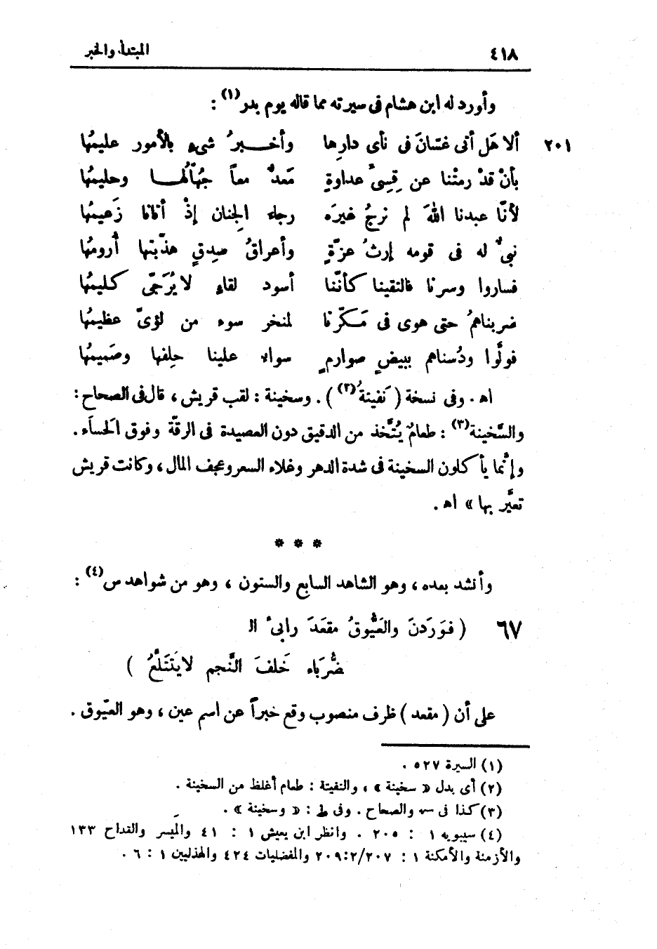وَأورد لَهُ ابْن هِشَام فِي سيرته مِمَّا قَالَه يَوْم بدر (الطَّوِيل)