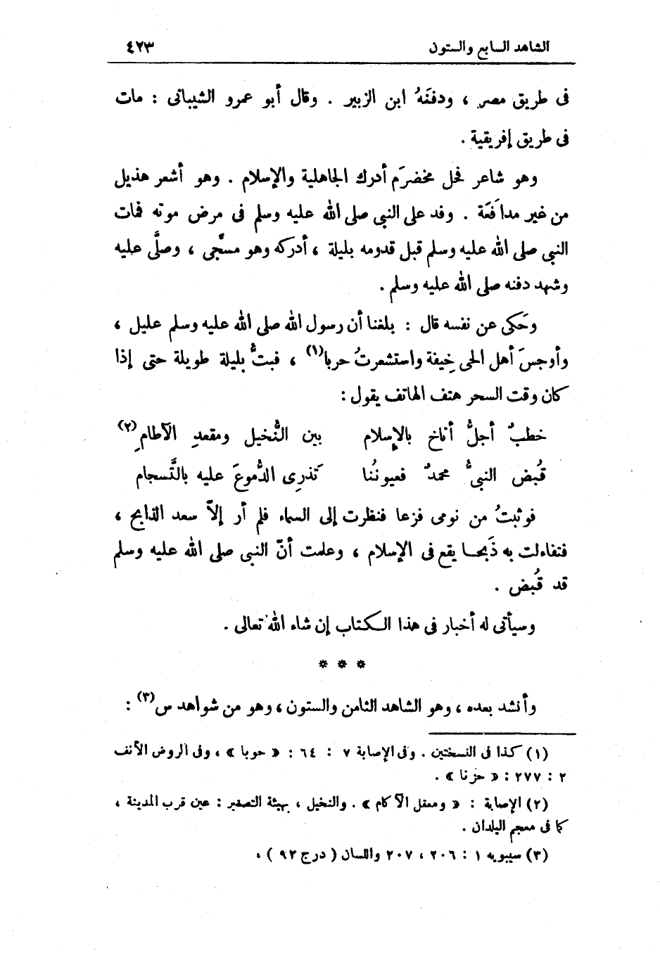 قد قبض وَسَيَأْتِي لَهُ أَخْبَار فِي هَذَا الْكتاب إِن شَاءَ الله تَعَالَى وَأنْشد بعده وَهُوَ الشَّاهِد الثَّامِن وَالسِّتُّونَ وَهُوَ من شَوَاهِد س ...