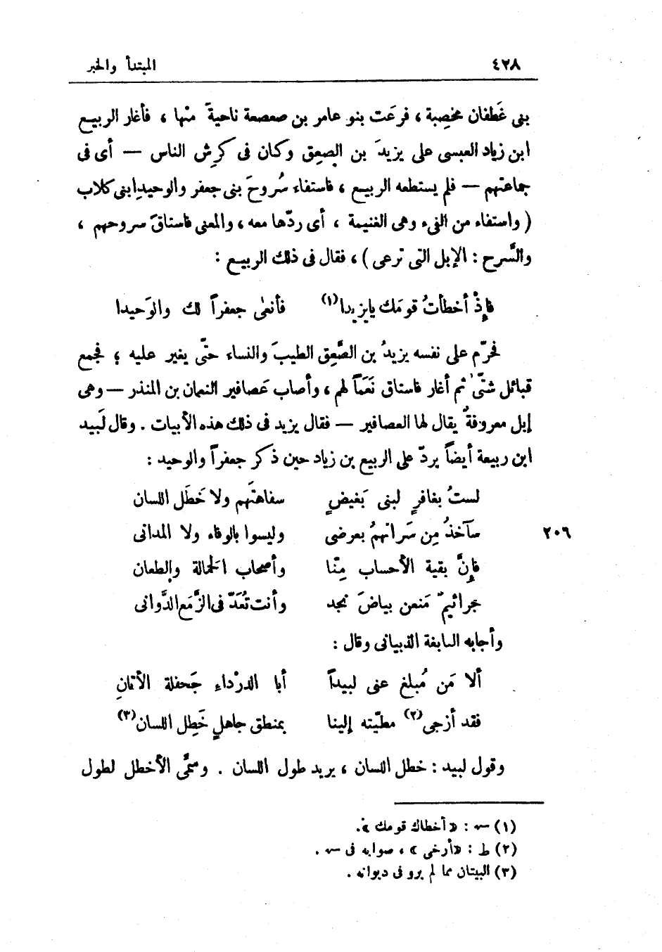 (فقد أزجى مطيته إِلَيْنَا ... بمنطق جَاهِل خطل اللِّسَان)