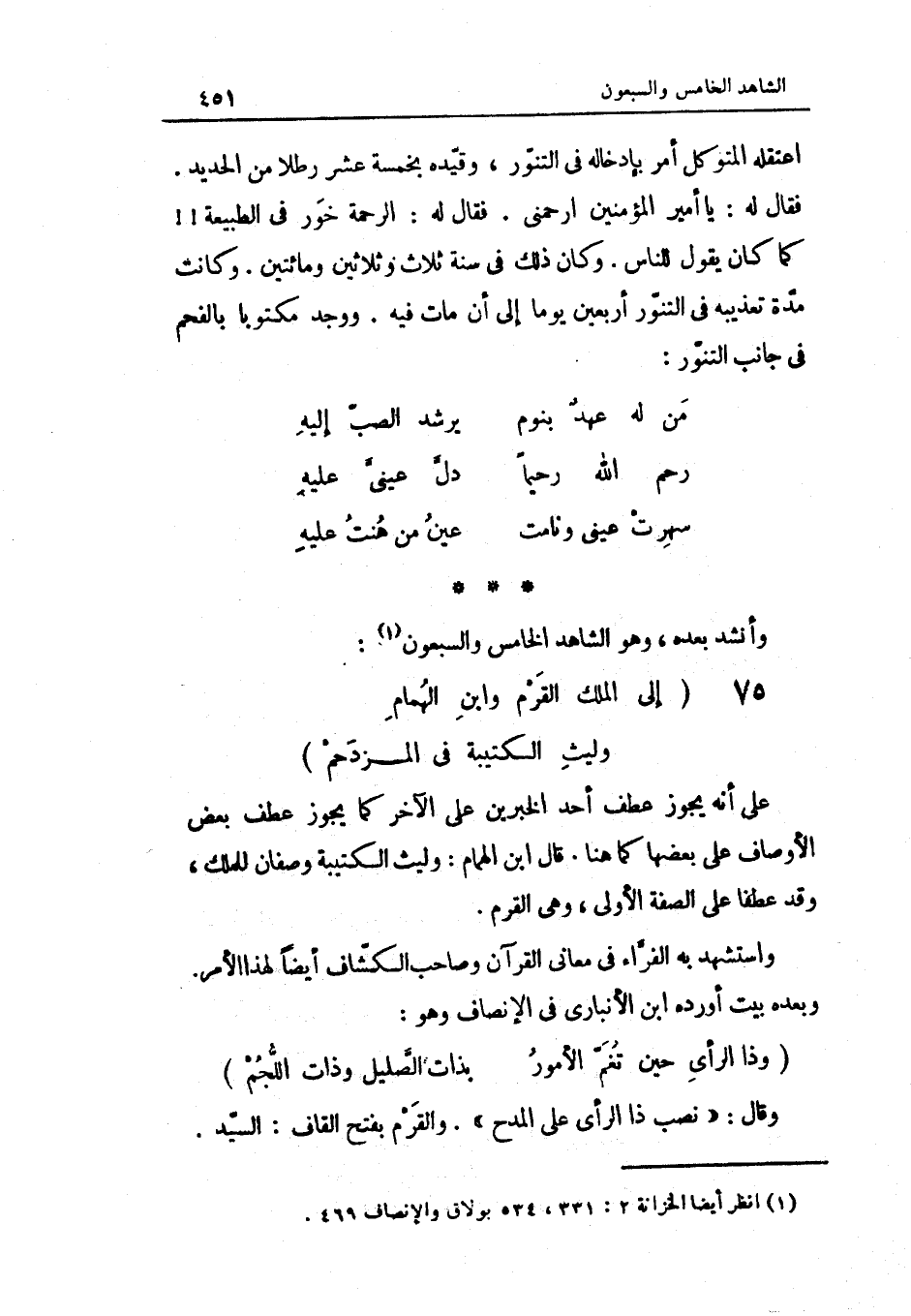 وَأنْشد بعده وَهُوَ الشَّاهِد الْخَامِس وَالسَّبْعُونَ (المتقارب)