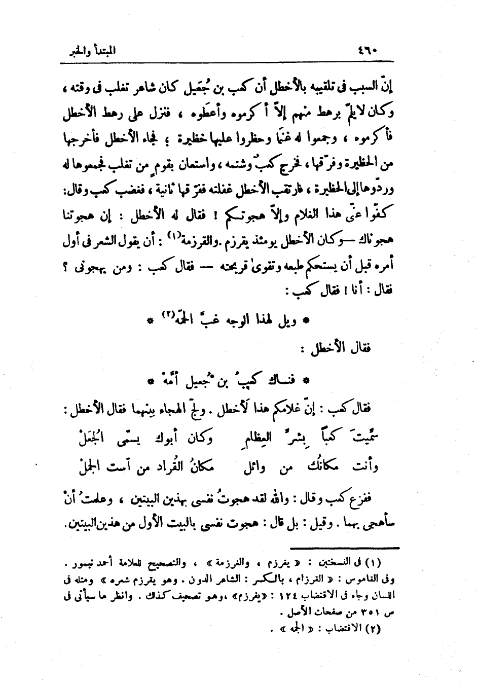 فَقَالَ كَعْب إِن غلامكم هَذَا لأخطل ولج الهجاء بَينهمَا فَقَالَ الأخطل (المتقارب)