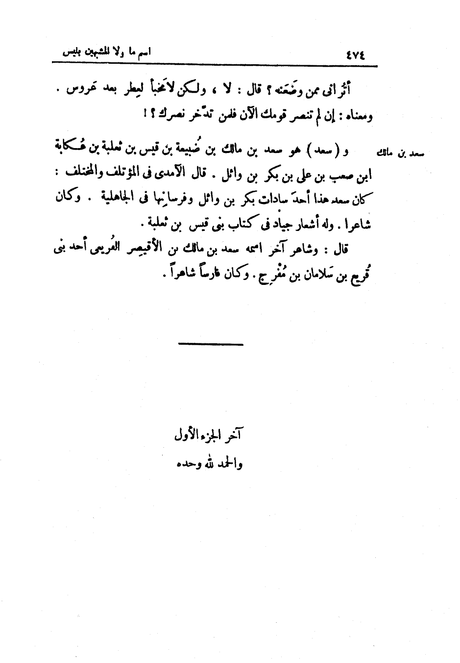 آخر الْجُزْء الأول وَالْحَمْد لله وَحده