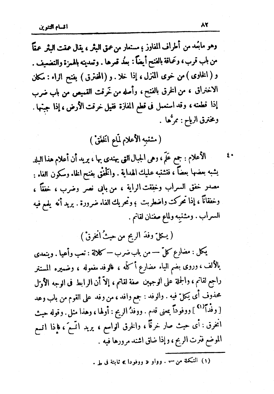 المفاوز مستعار من عمق الْبِئْر يُقَال عمقت الْبِئْر عمقا من بَاب قرب وعماقة بِالْفَتْح أَيْضا بعد قعرها وتعديته بِالْهَمْزَةِ والتضعيف والخاوي من خوى الْمنزل إِذا خلا والمخترق بِفَتْح الرَّاء مَكَان الاختراق من الْخرق بِالْفَتْح وَأَصله من خرقت الْقَمِيص من بَاب ضرب إِذا قطعته وَقد اسْتعْمل فِي قطع الْمَفَازَة فَقيل خرقت الأَرْض إِذا جبتها ومخترق الرِّيَاح ممرها