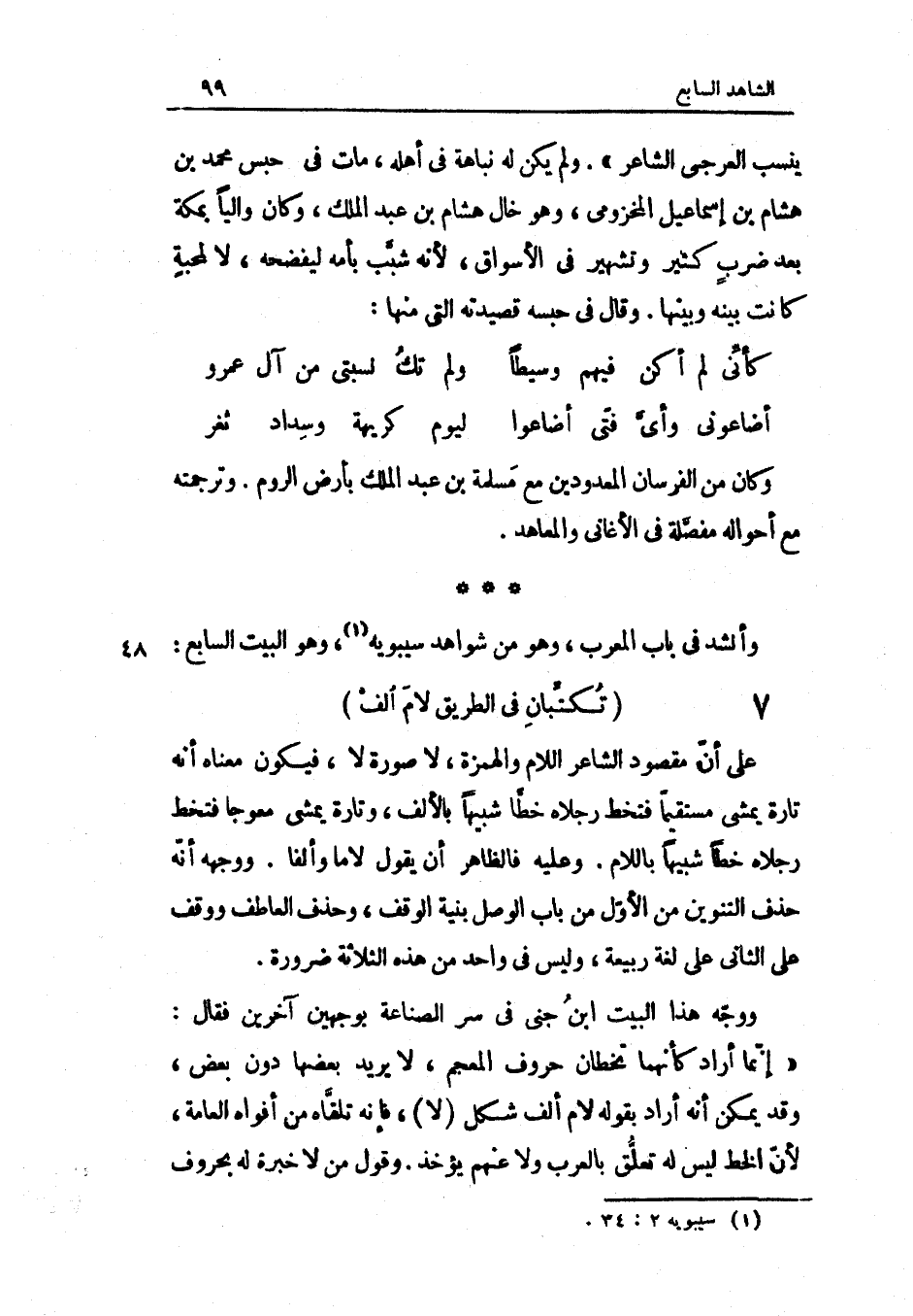 وَأنْشد فِي بَاب المعرب وَهُوَ من شَوَاهِد سِيبَوَيْهٍ وَهُوَ الْبَيْت السَّابِع
